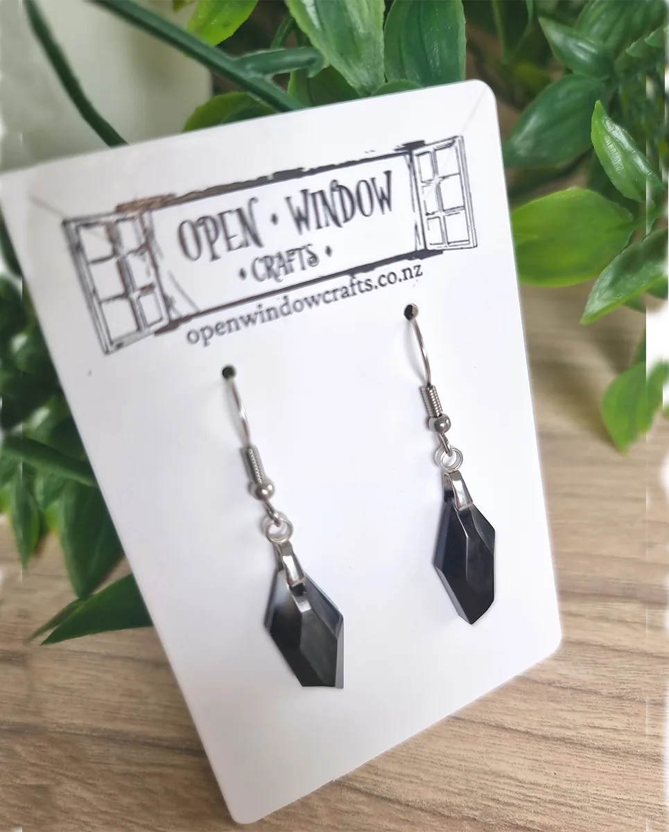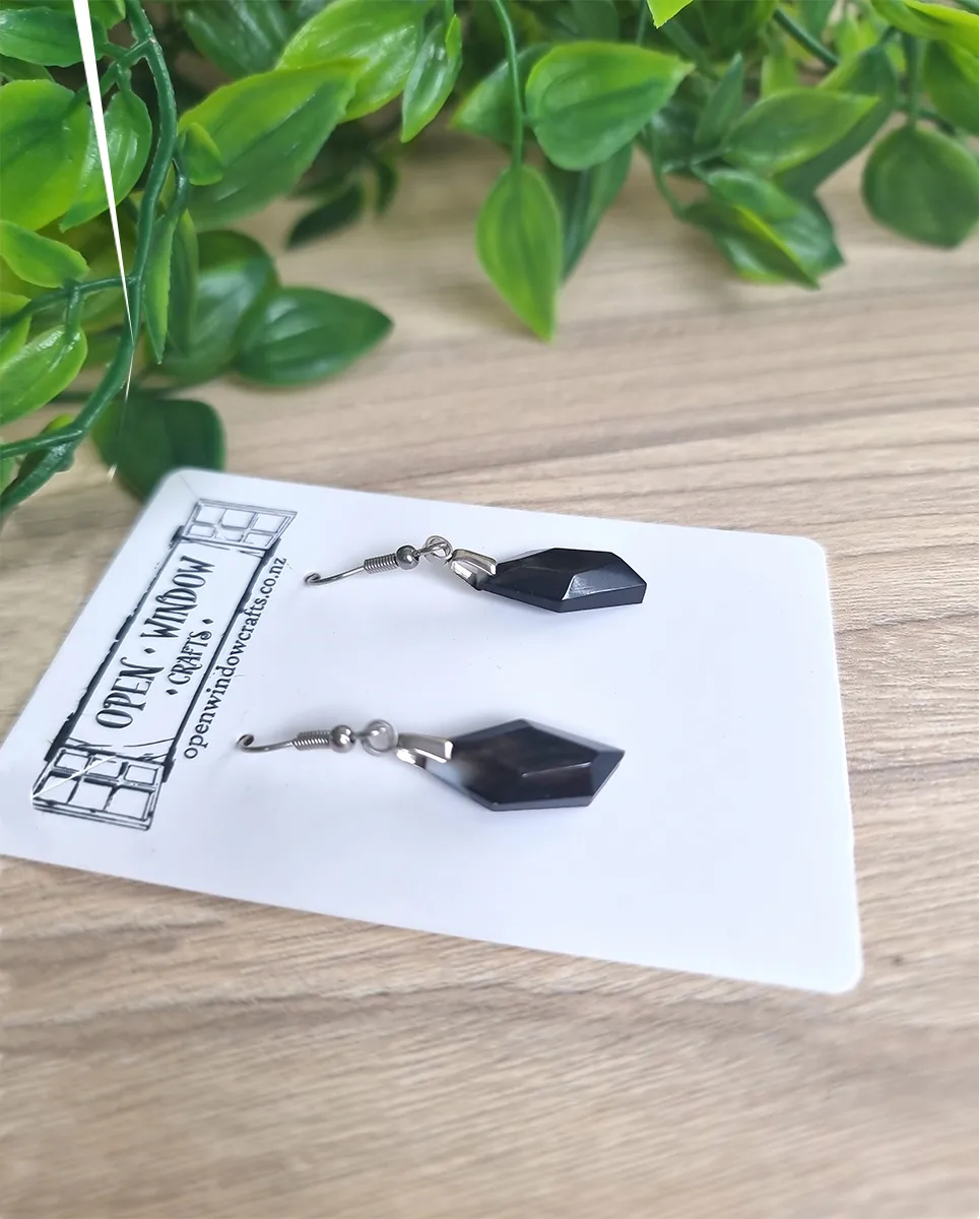 Enhance your jewellery collection with these stunning handmade black gem-shaped resin earrings. Featuring a sleek, faceted design that mimics the elegance of gemstones, these earrings add a bold yet sophisticated touch to any outfit. The deep black finish gives them a timeless and versatile appeal, perfect for both casual and formal wear.