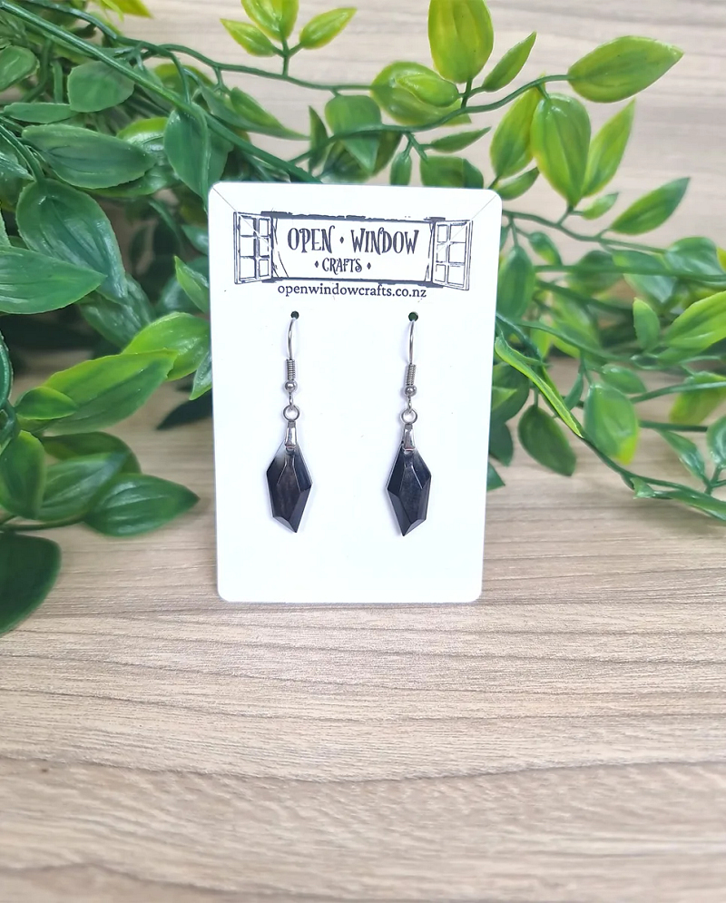 Enhance your jewellery collection with these stunning handmade black gem-shaped resin earrings. Featuring a sleek, faceted design that mimics the elegance of gemstones, these earrings add a bold yet sophisticated touch to any outfit. The deep black finish gives them a timeless and versatile appeal, perfect for both casual and formal wear.