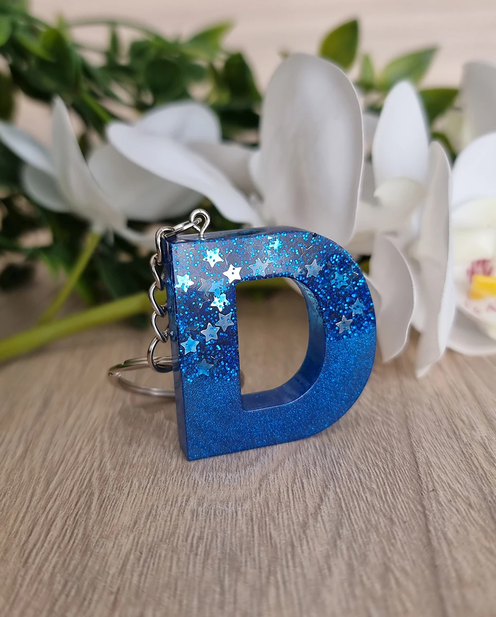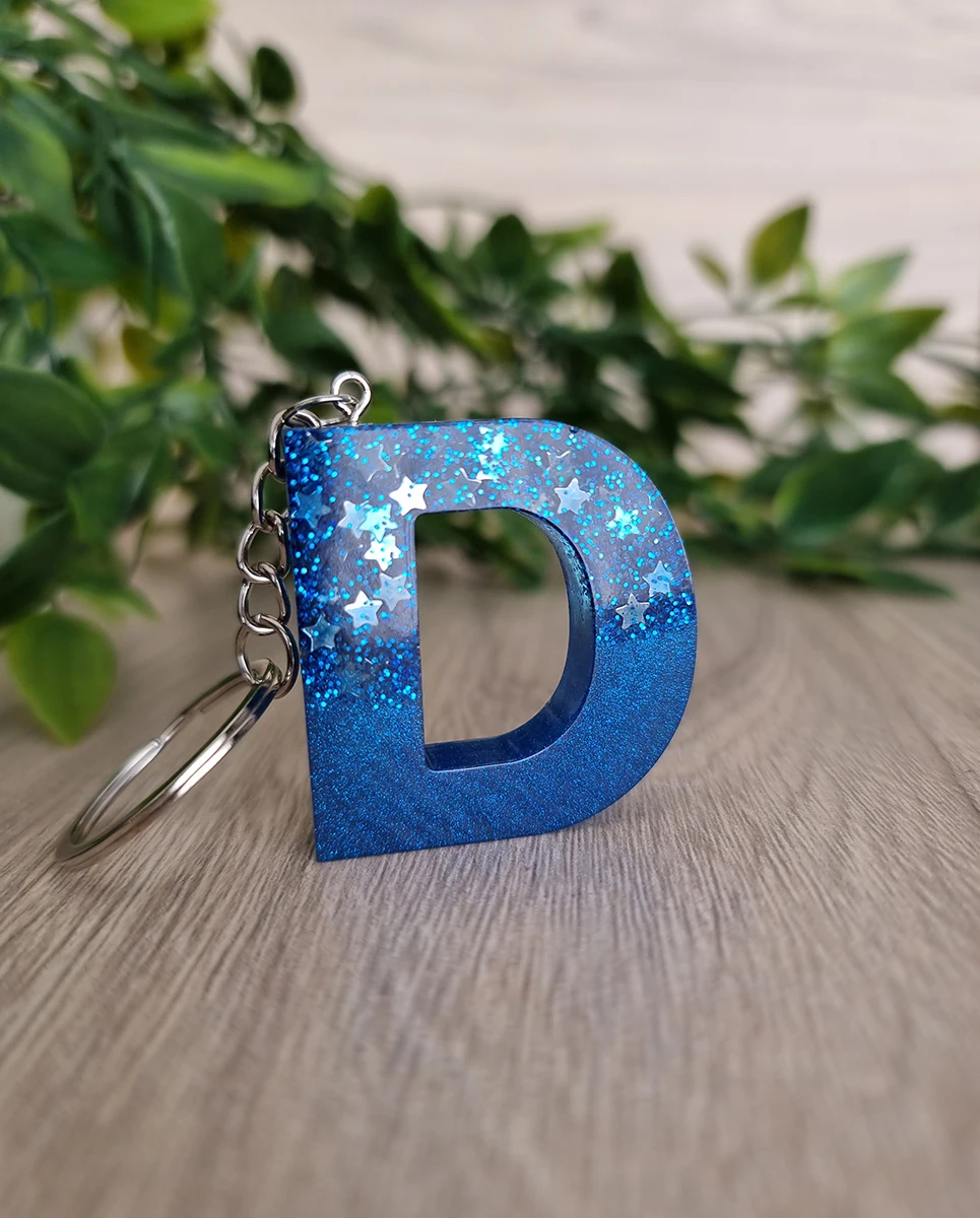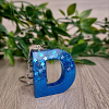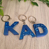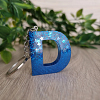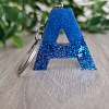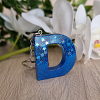 Blue Glitter Sliver Stars Resin Alphabet Key Ring
