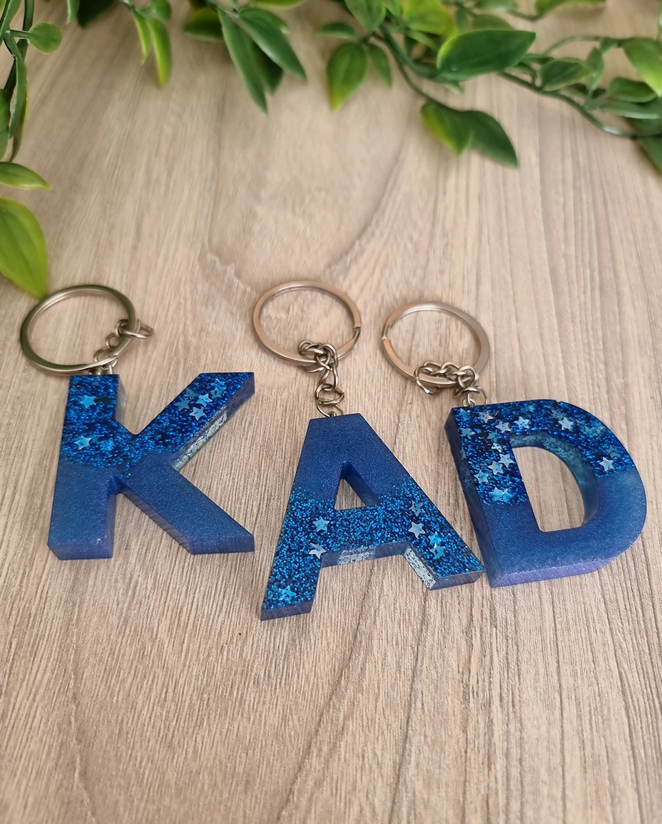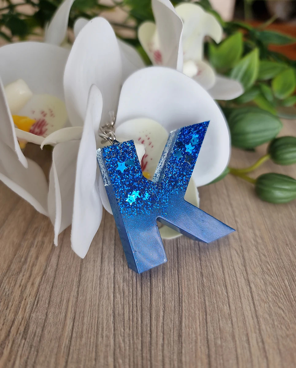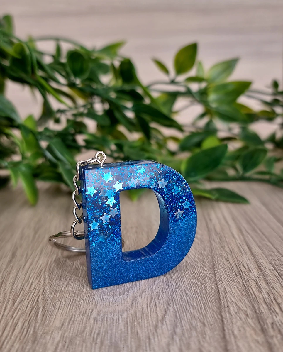 Add a touch of sparkle to your keys with this blue resin Keychain, adorned with blue glitter stars. It’s a chic and colorful accessory that shines with every movement.