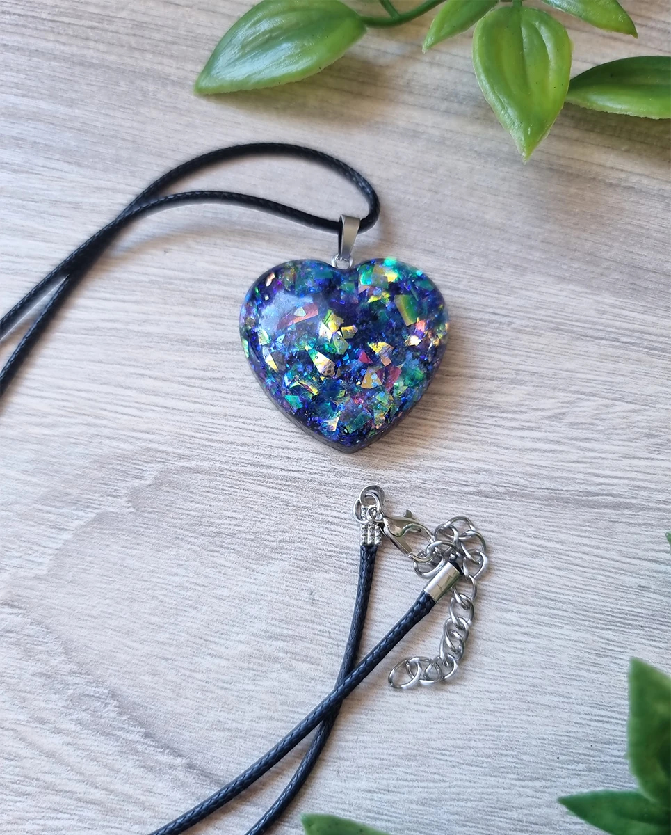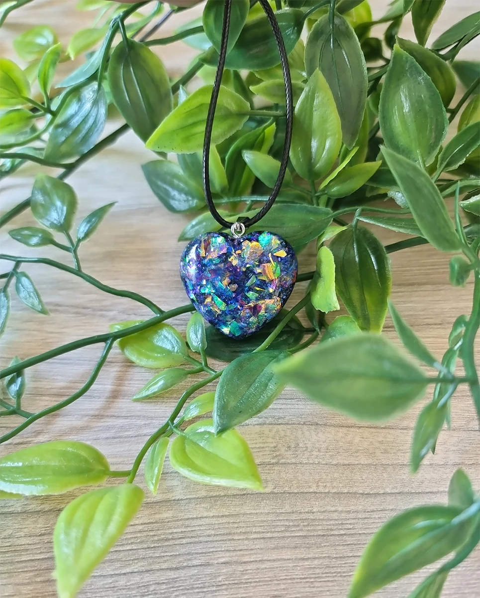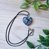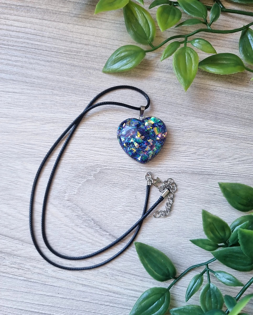 Blue – Green Tones Glitter Resin Heart Pendant Black Cord