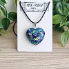 Blue – Green Tones Glitter Resin Heart Pendant Black Cord