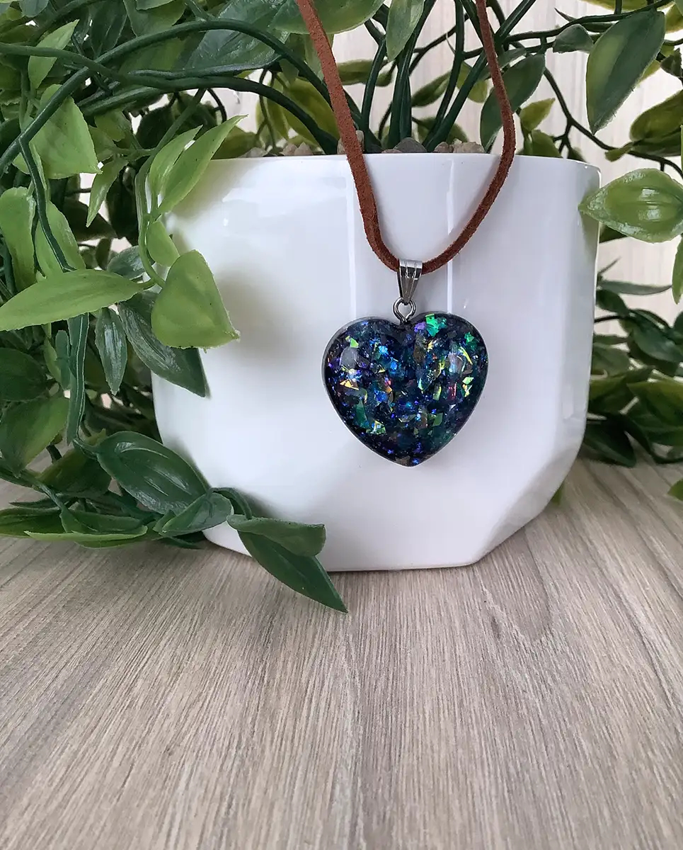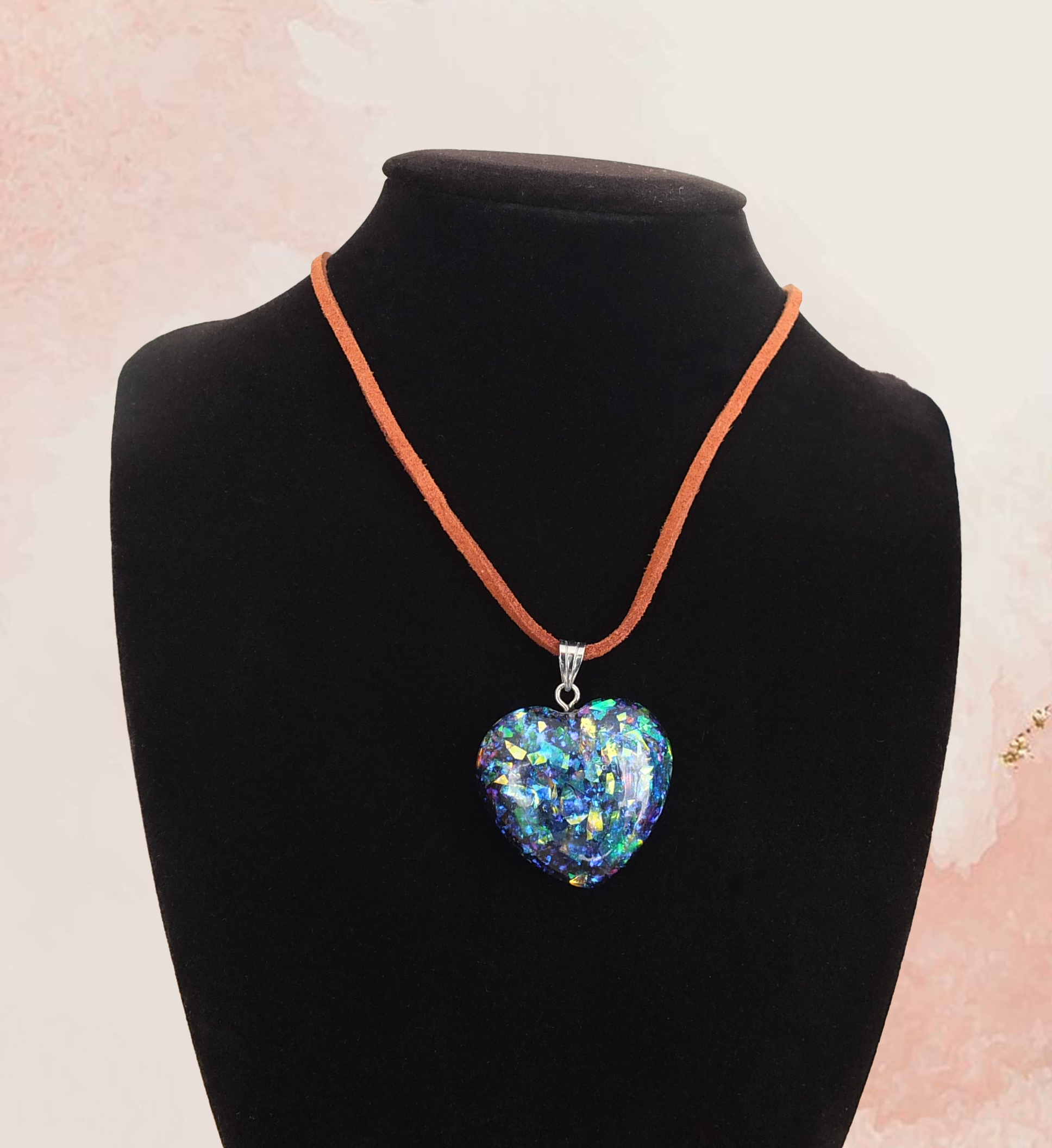 Be the first to review “Blue – Green Tones Glitter Resin Heart Pendant”