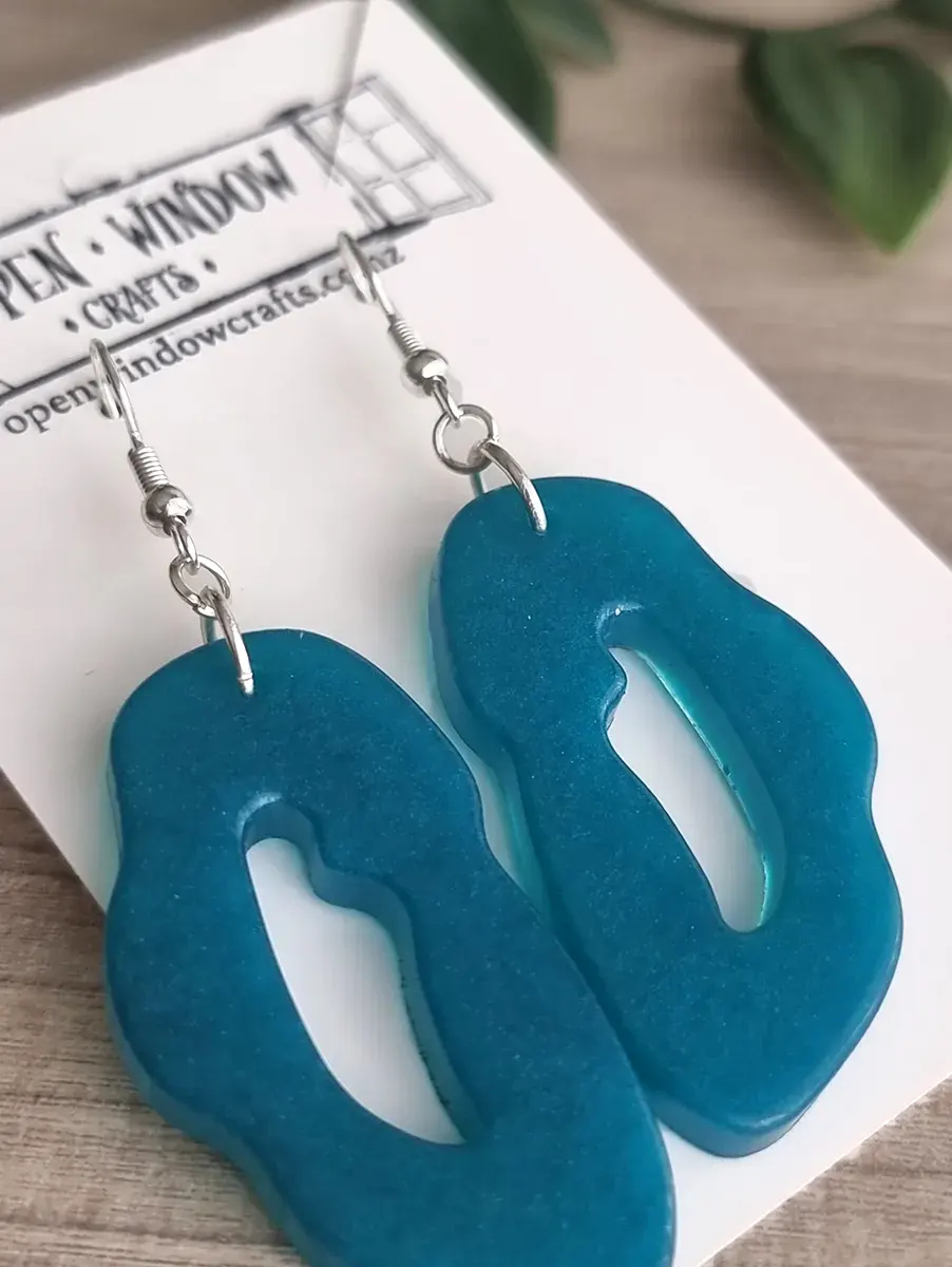 Blue Teal Irregular Shape Resin Earring Handmade Jewellery – Blue Resin Earrings New Zealand