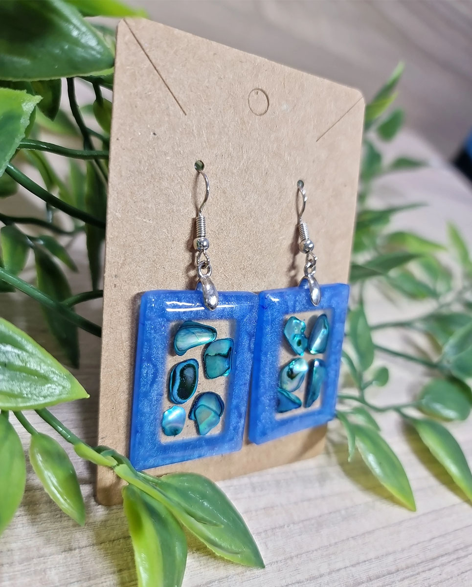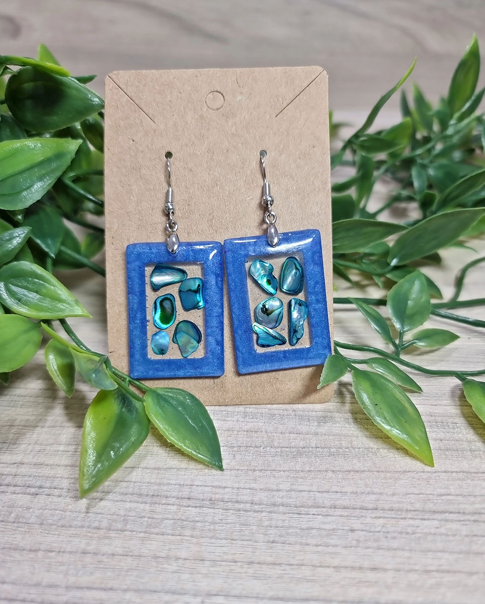Blue Pāua Rectangle Earrings – Blue Resin Earrings