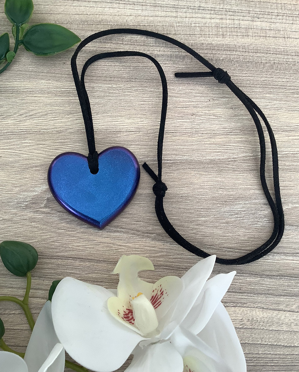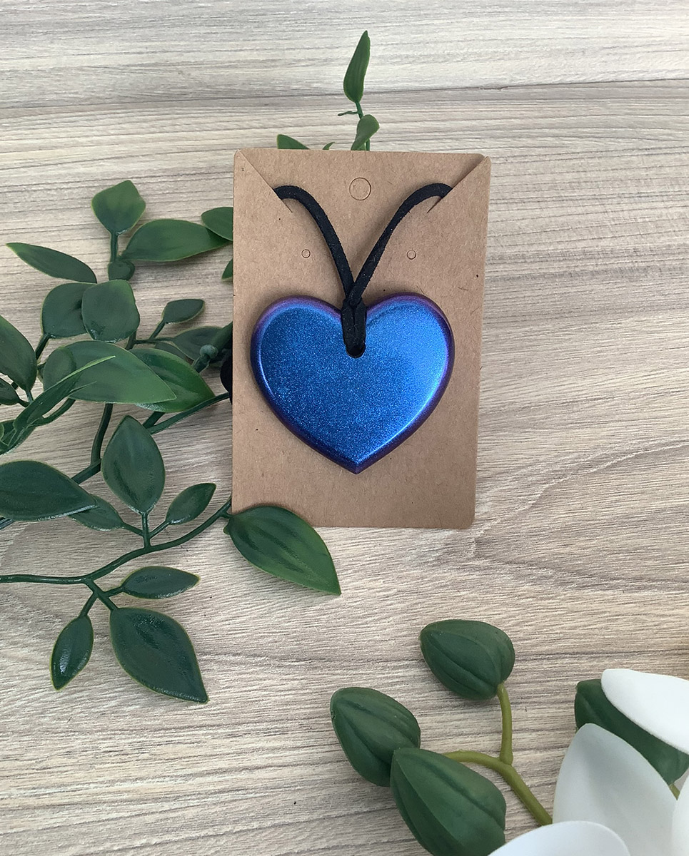 Blue Purple Shimmer Heart Resin Necklace Pendant