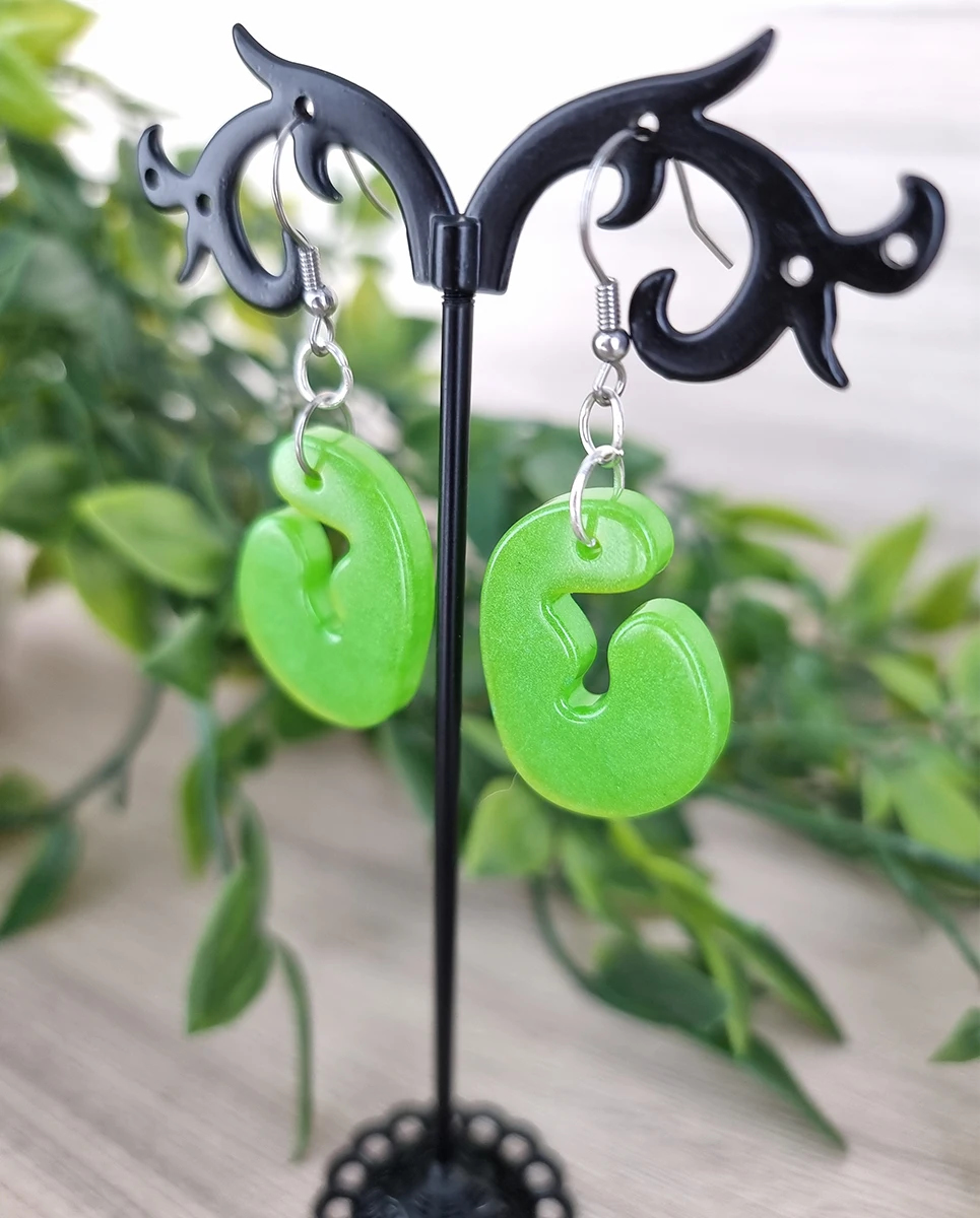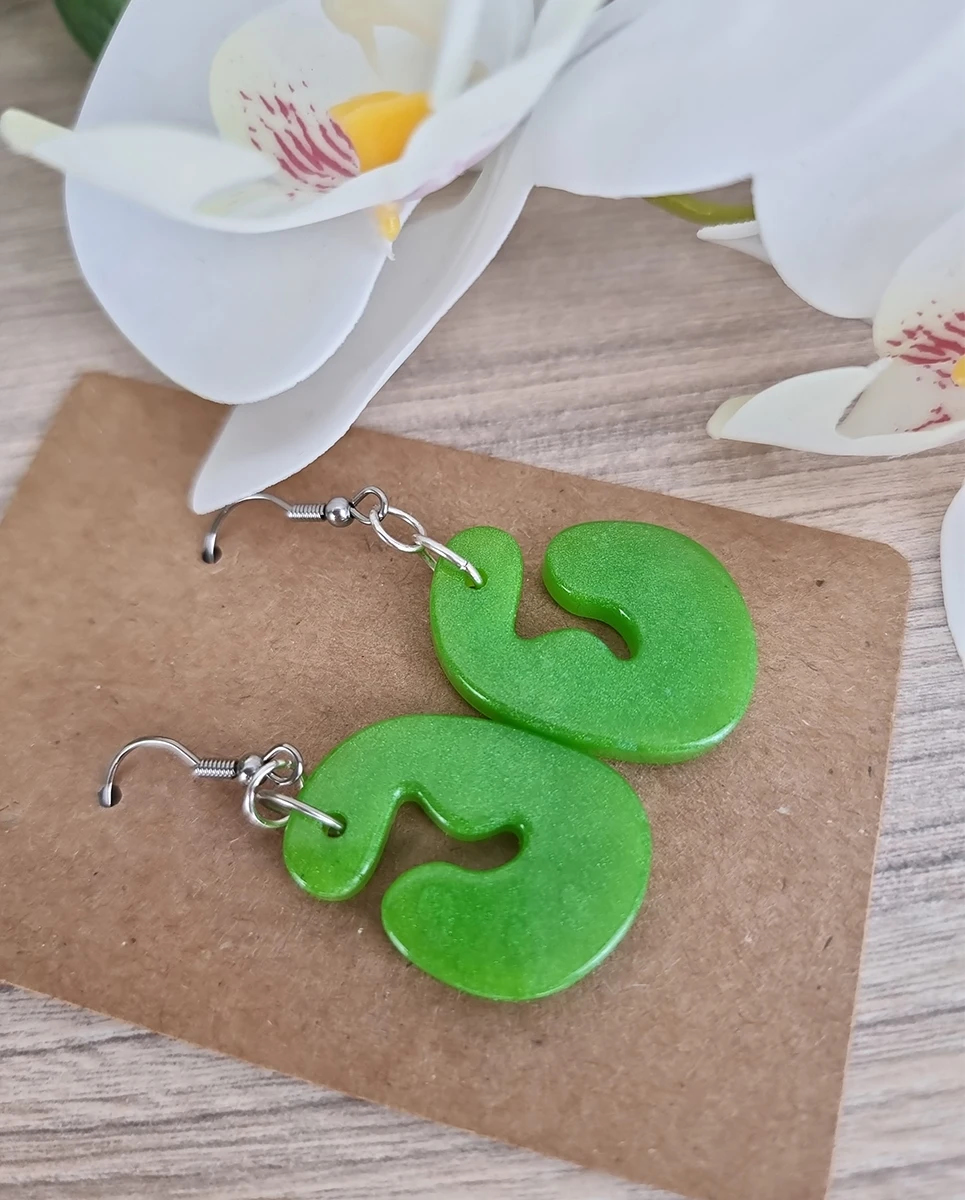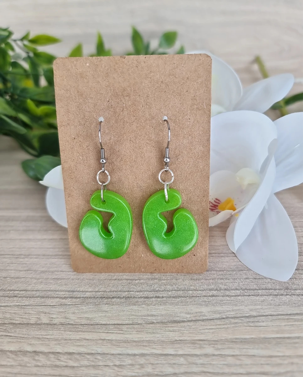 • Bold, bright green resin earrings with a fun, quirky shape