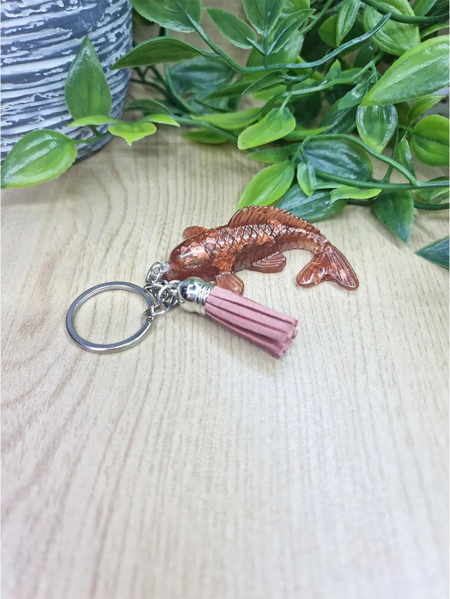 Bring peaceful pond vibes into your everyday routine with this charming resin koi fish keychain!