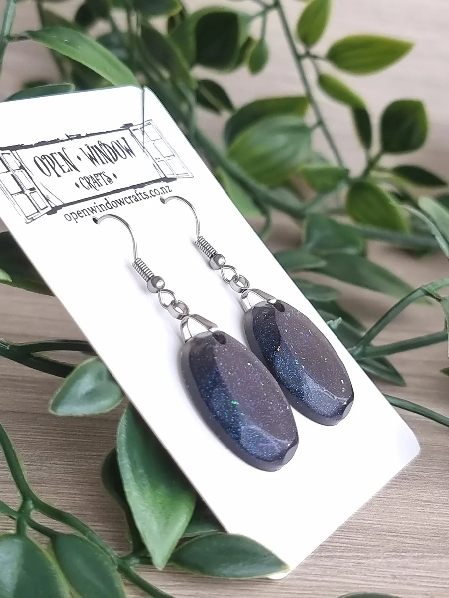 Galaxy Glitter Oval Gem Resin Dangle Earrings