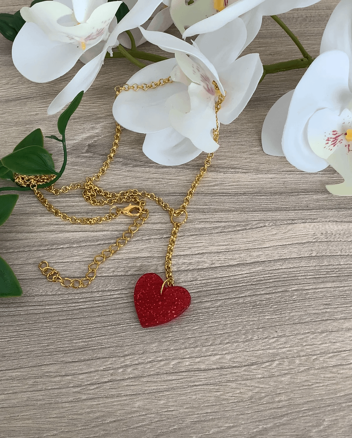 Be the first to review “Glitter Heart Resin Necklace Gold Chain”