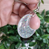 Embrace the beauty of the night sky with these enchanting Glitter Moon Dangle Earrings. Crafted from high-quality resin, these earrings feature a stunning moon shape filled with shimmering glitter that catches the light beautifully. The dangle design adds a playful movement, making them an eye-catching accessory for any occasion.