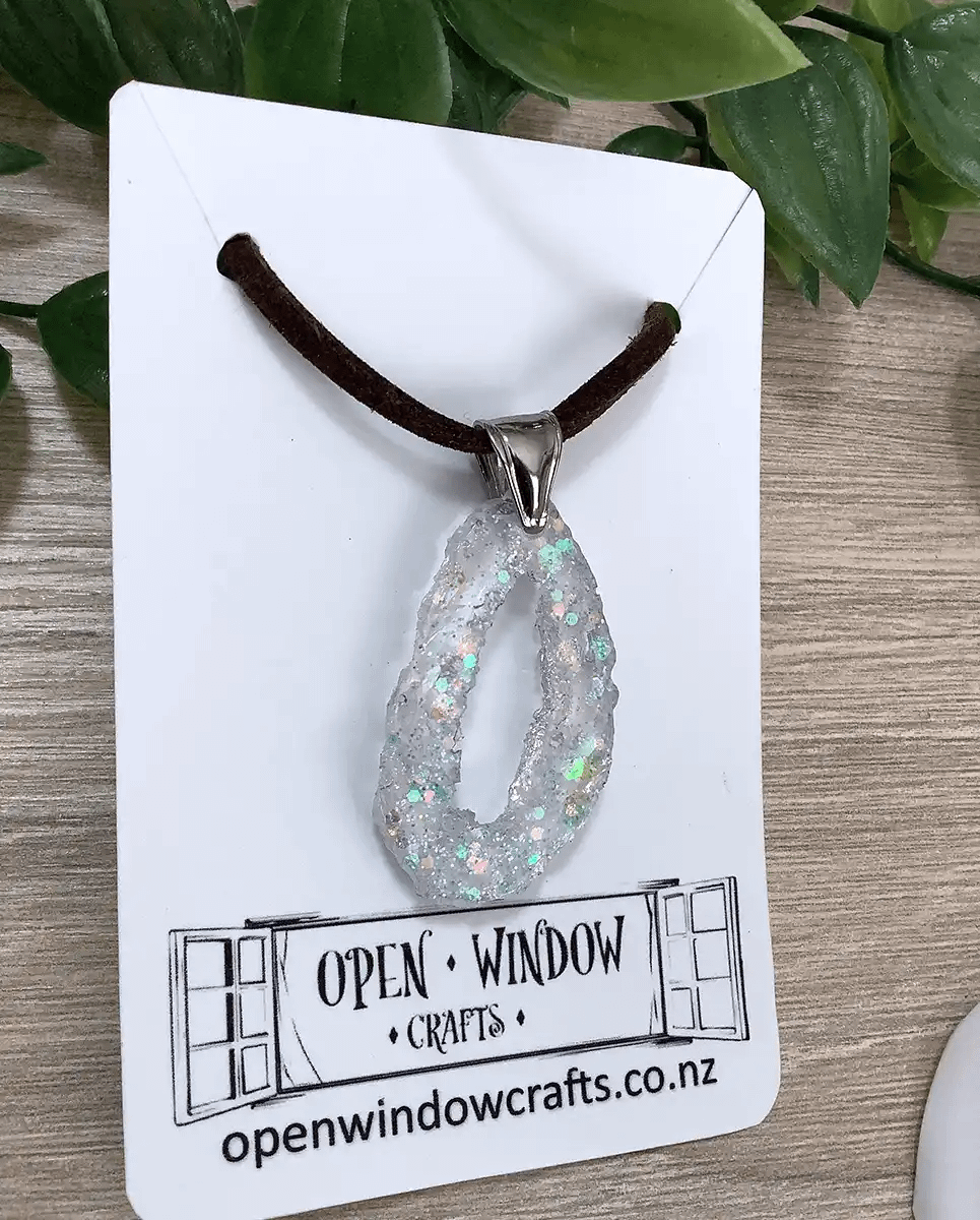 Glitter Resin Geode Pendant Necklace