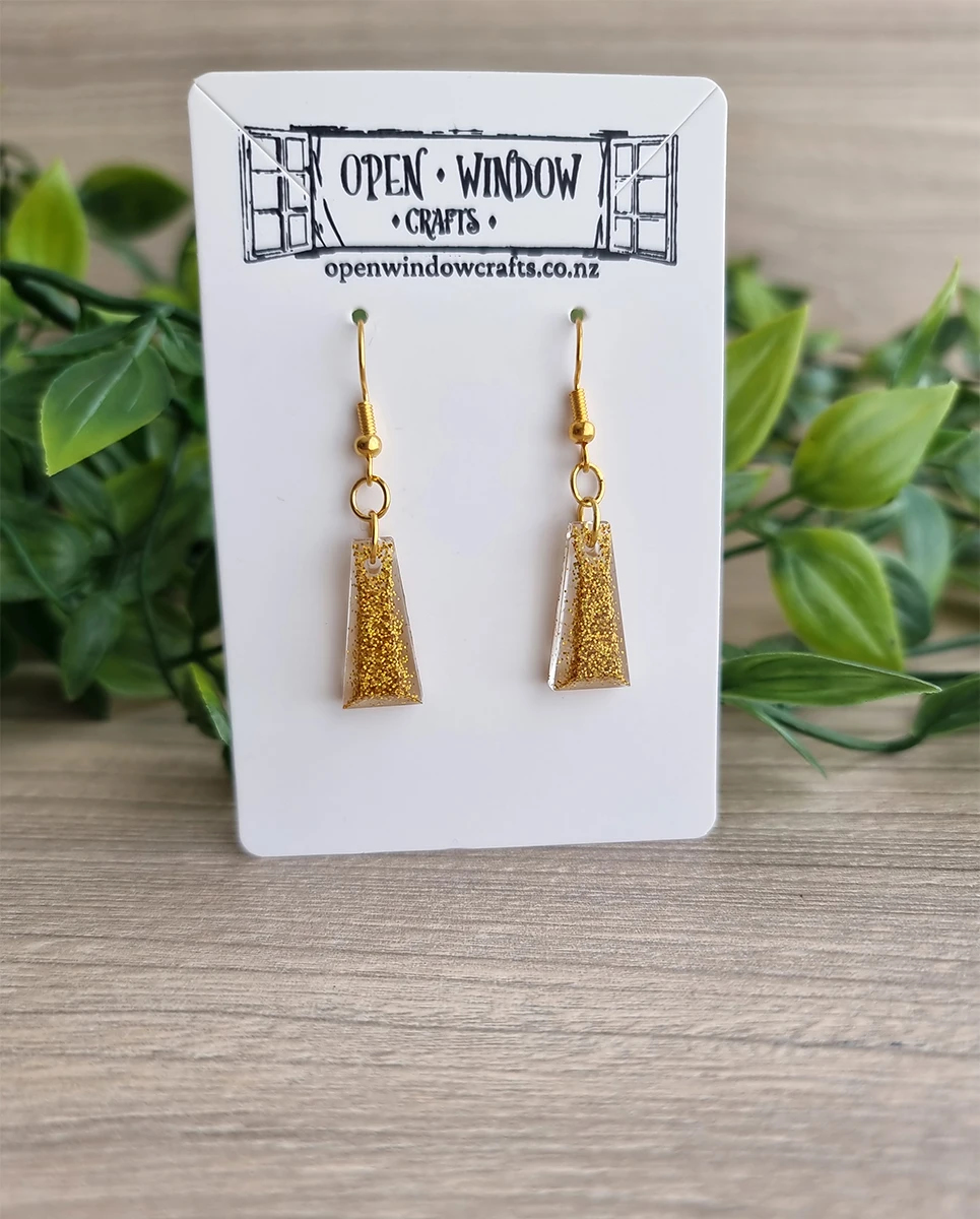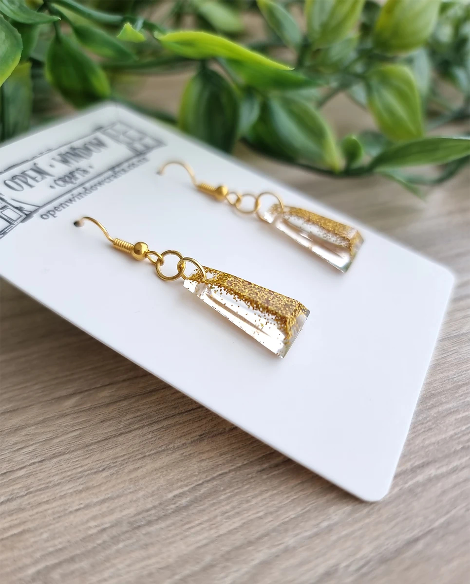 Gold Glitter Thin Taper Resin Earrings