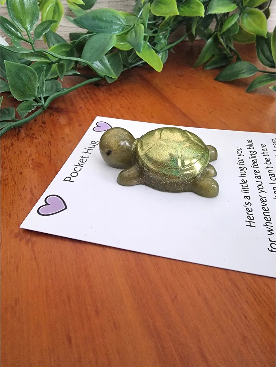 Be the first to review “Gold Shimmer Glitter Resin Turtle Pocket Hug”