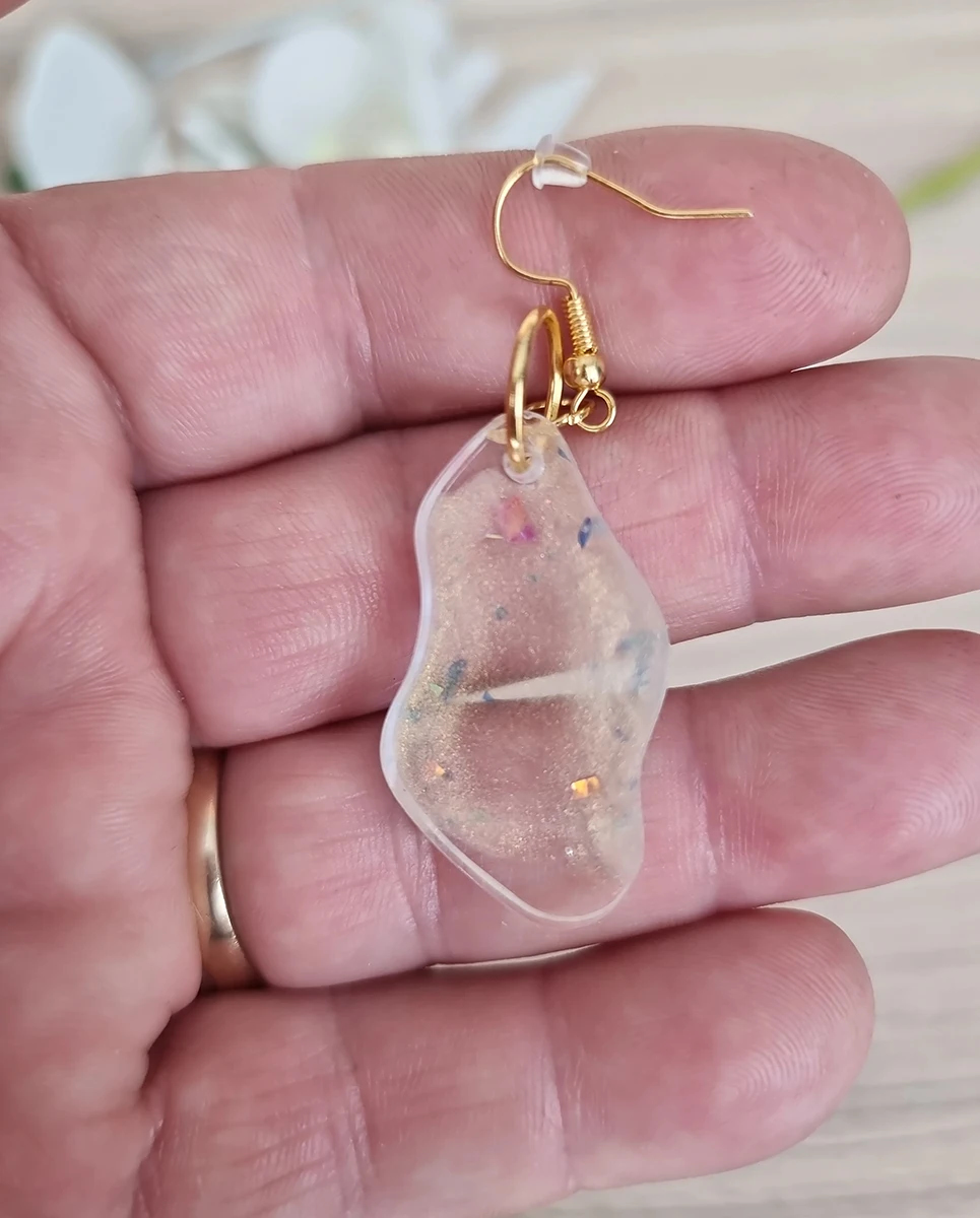 Be the first to review “Golden Glitter Flakes Dangle Resin Earrings”