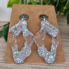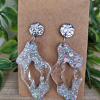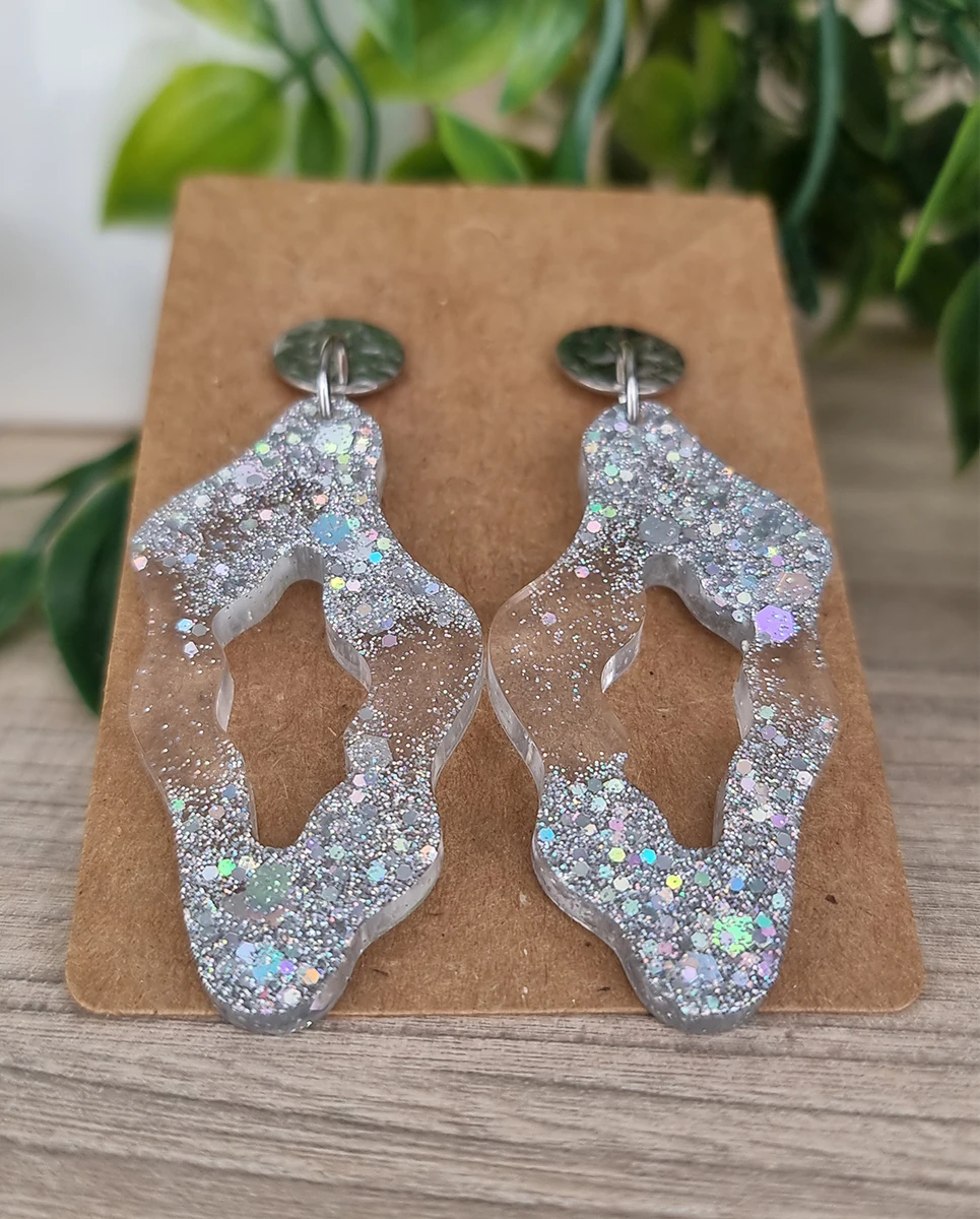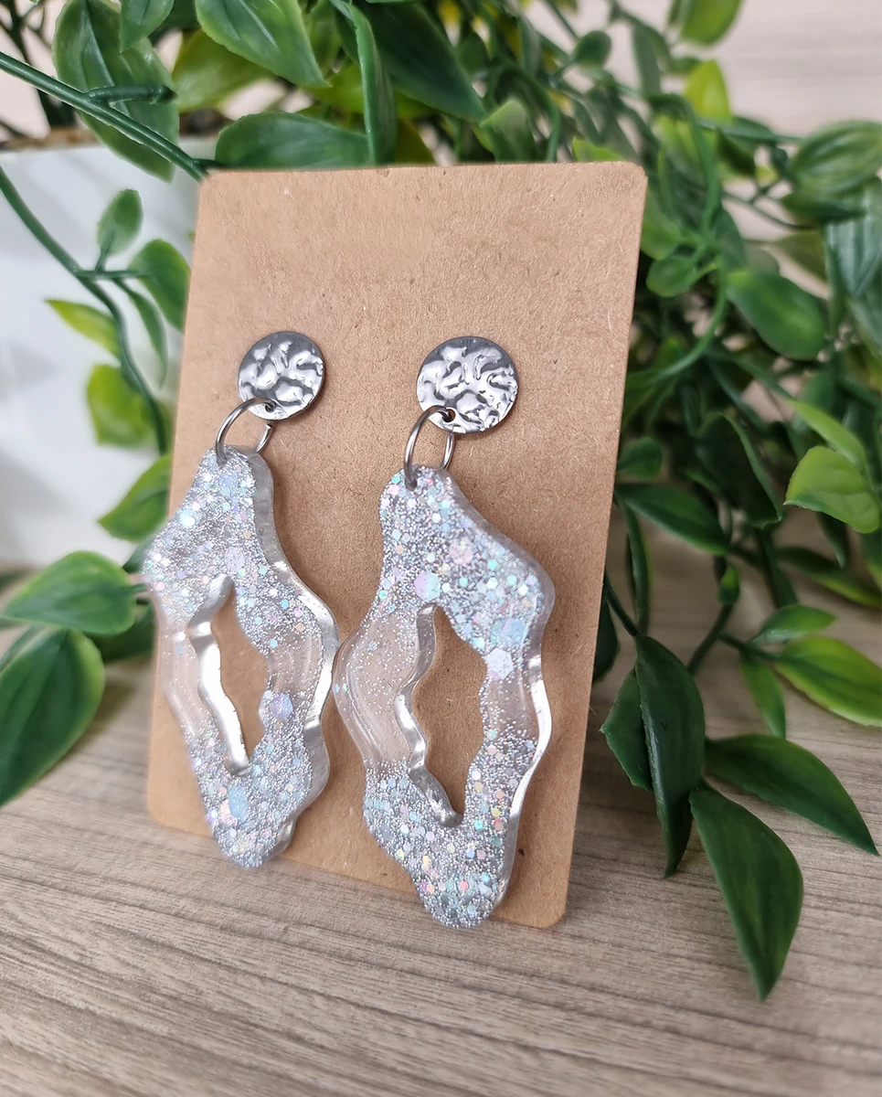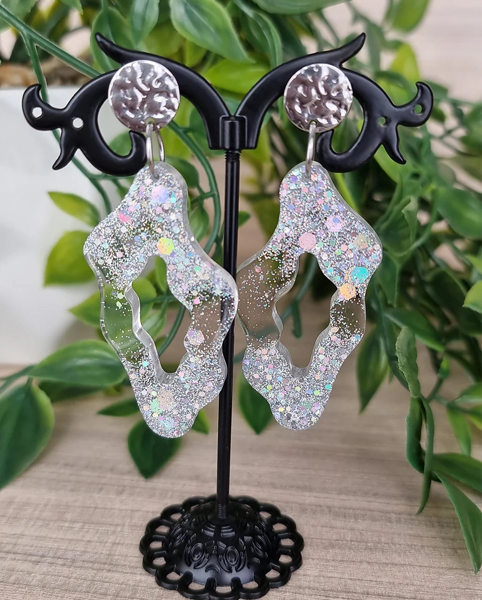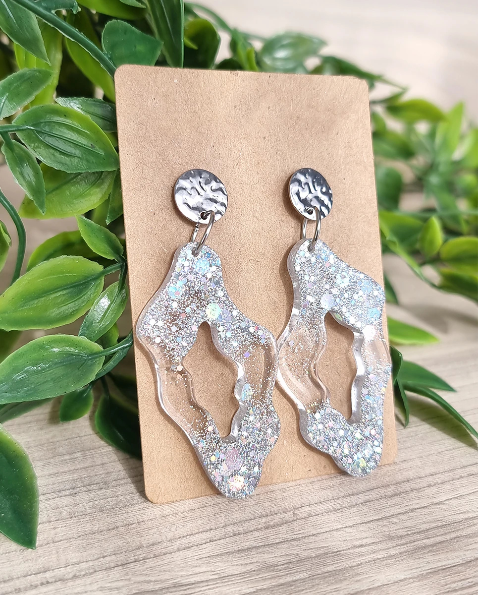 Irregular Silver Glitter Clear Resin Stud Dangle Earrings
