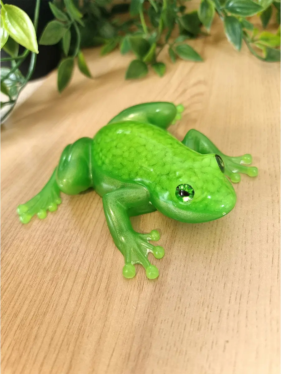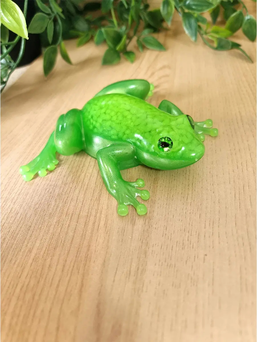 Add a little magic to your home with the Resin Green Pebble Frog, a perfect decorative piece for any frog lover or fan of glittering accents.