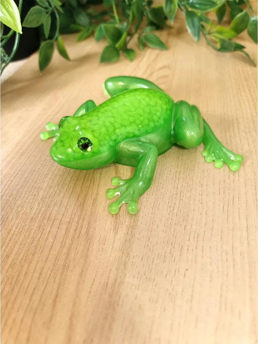 Light Green Resin And Glow In The Dark Pebbles Large Resin Ornate Frog