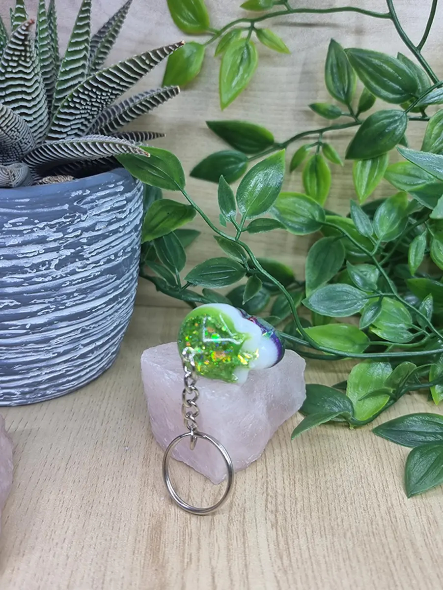 Multicolour Resin And Glitter Resin Skull Keyring / Keychain