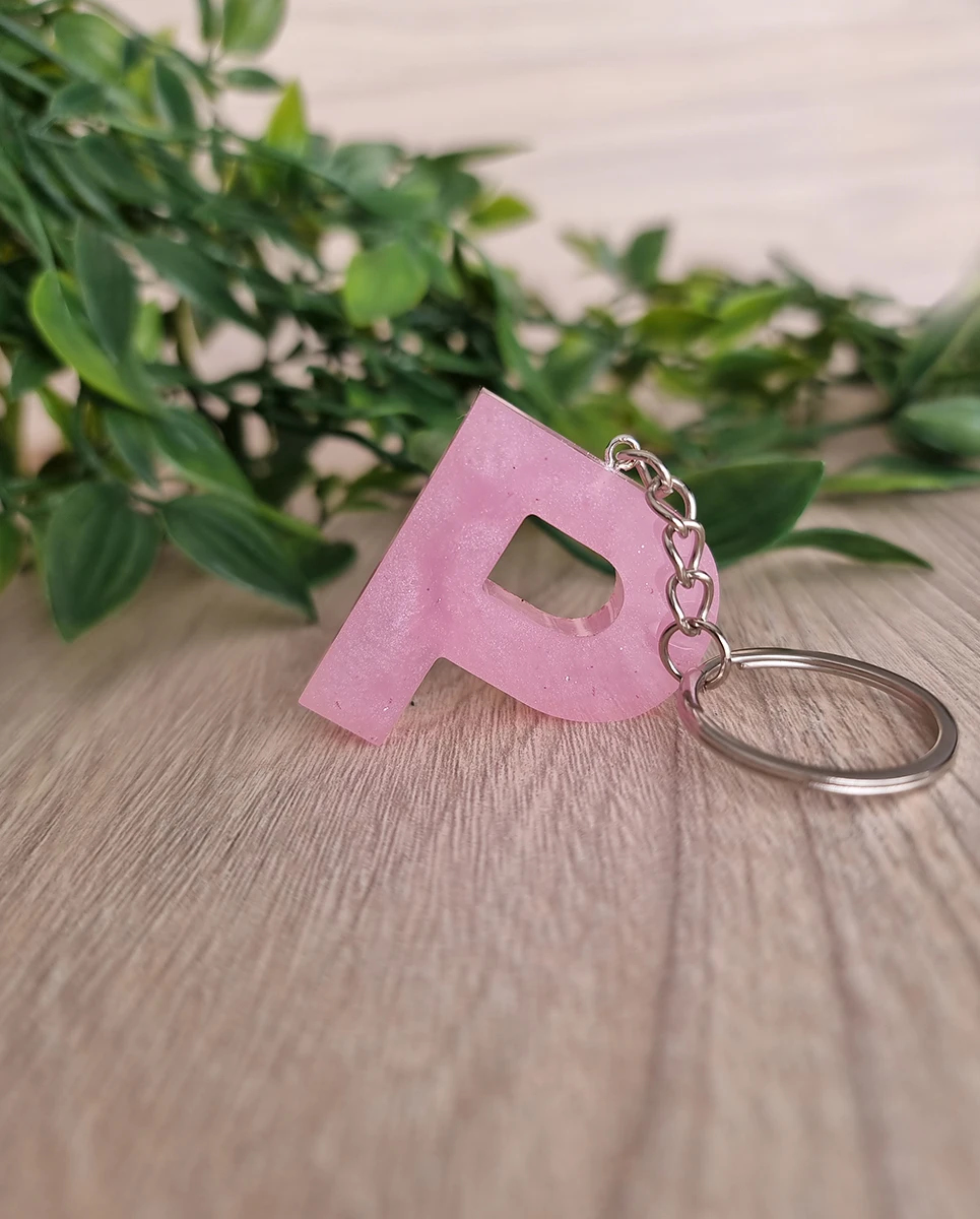 Pink Resin Alphabet Key Ring