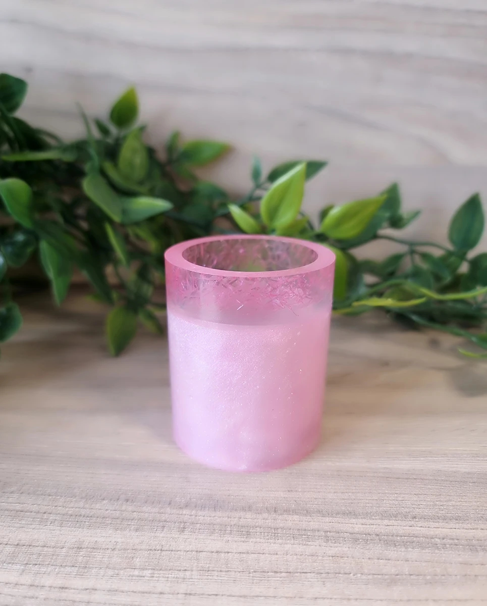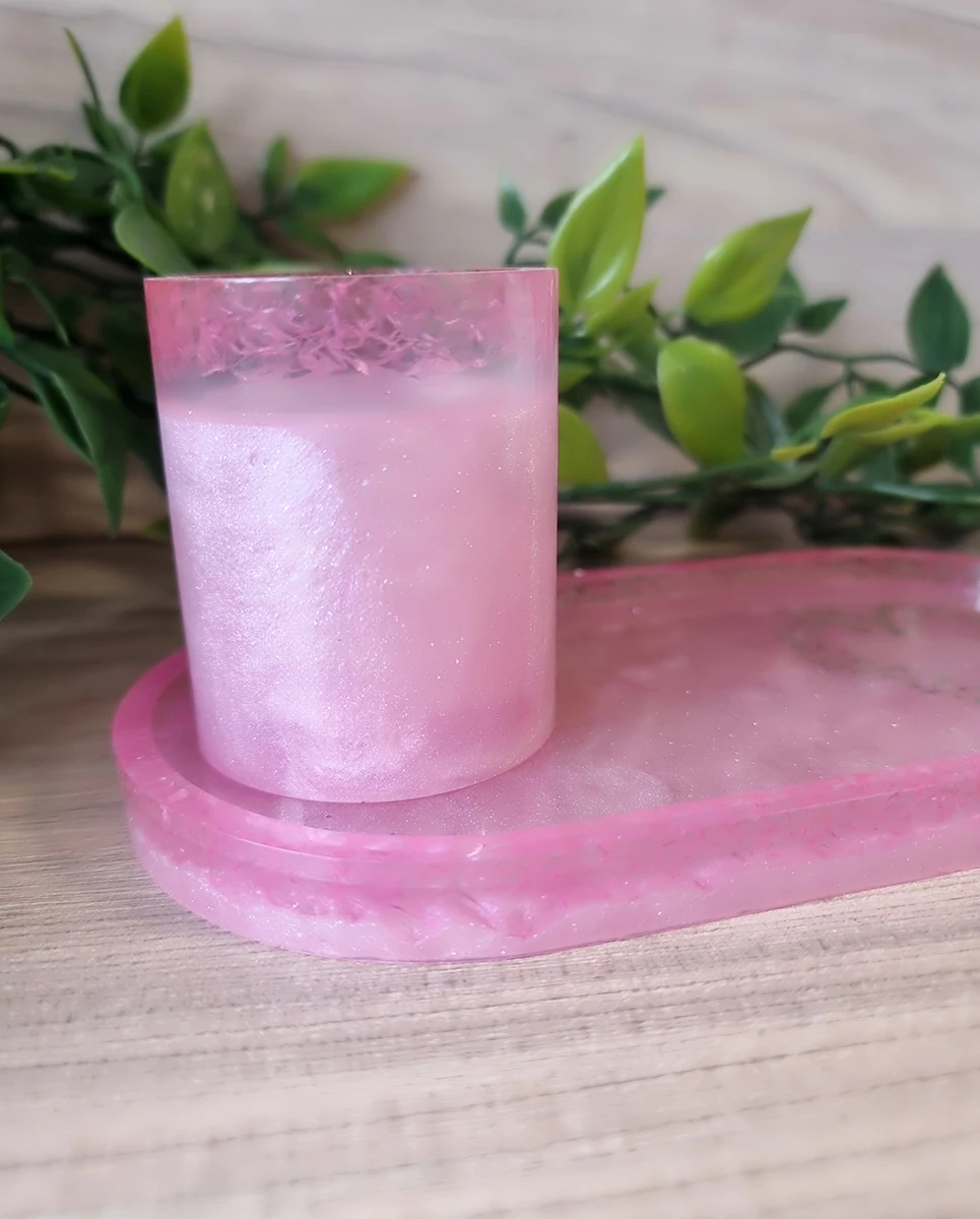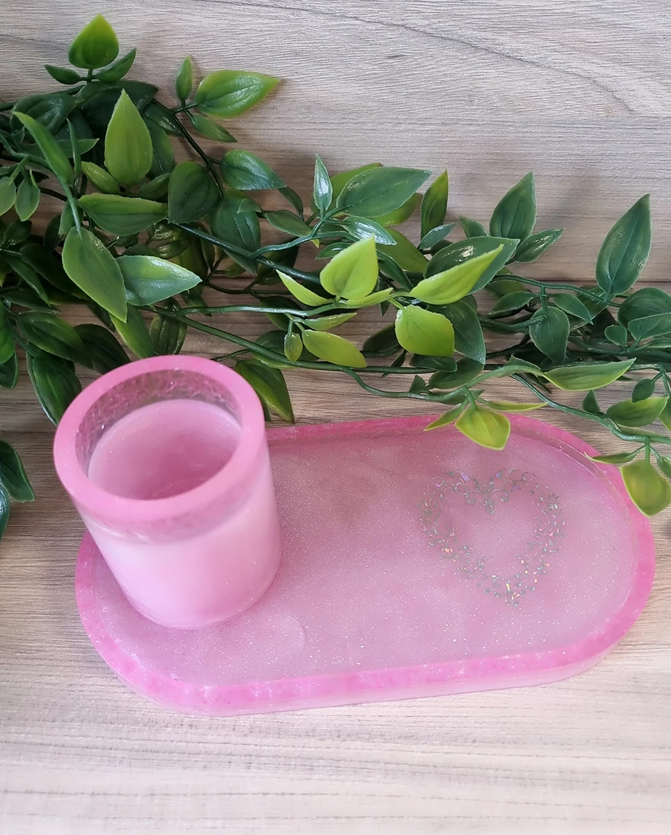 Pink Resin Holographic Heart Trinket Tray And Cup