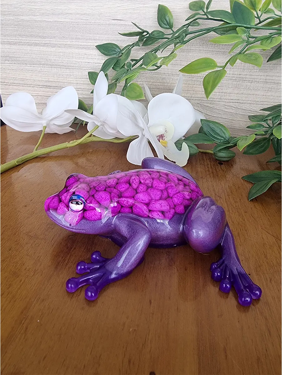 This resin frog is more than just decor—it’s a conversation starter. Whether placed on a shelf, desk, or outdoor patio, its vibrant pebbles and shimmering resin colors catch the eye and add a touch of whimsy. Perfect for those who appreciate handmade artistry, this piece combines eco-friendly resin options with creative flair, ensuring both beauty and sustainability.