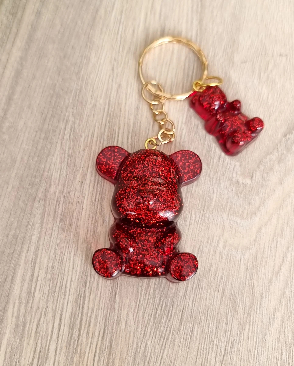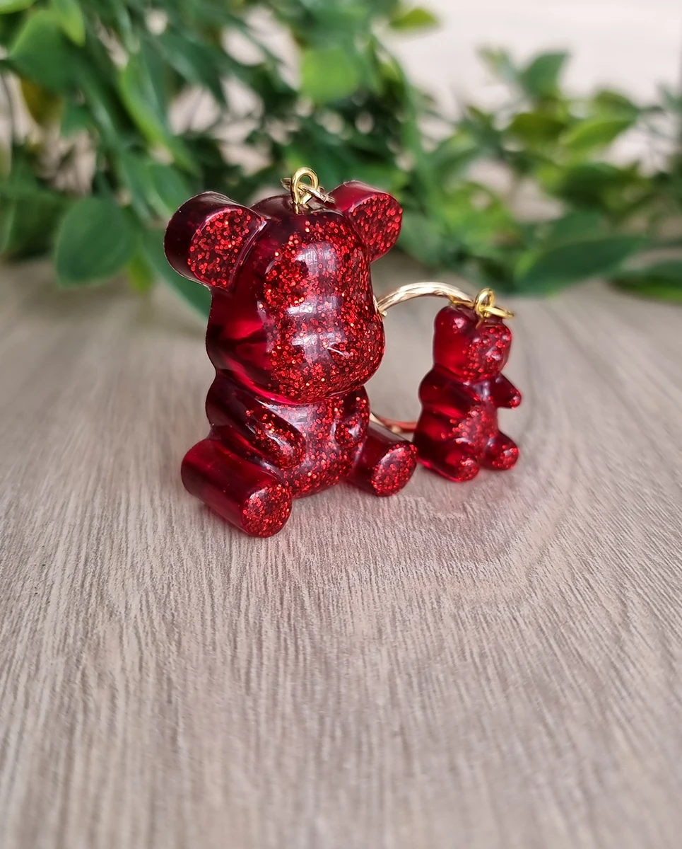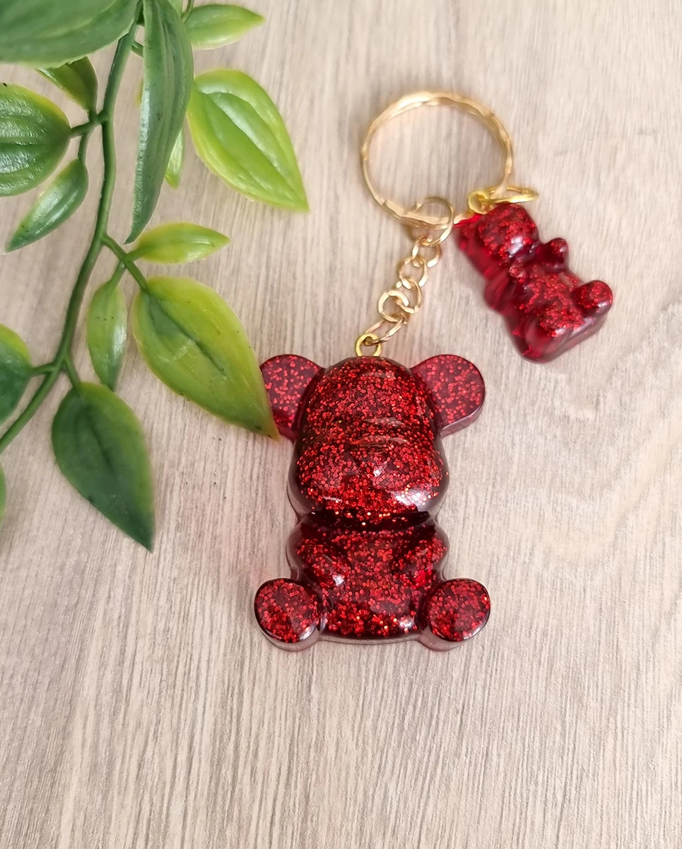 Red Glitter Bear Resin Key Ring Keychain