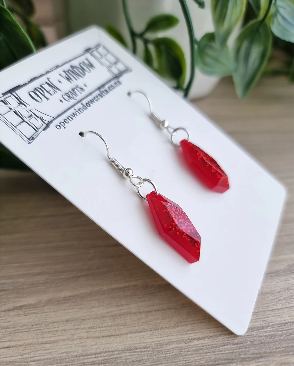 Red Glitter Gem Shape Resin Earrings