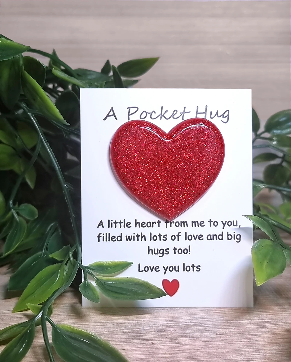 Red Glitter Heart Resin Pocket Hugs Various Sizes