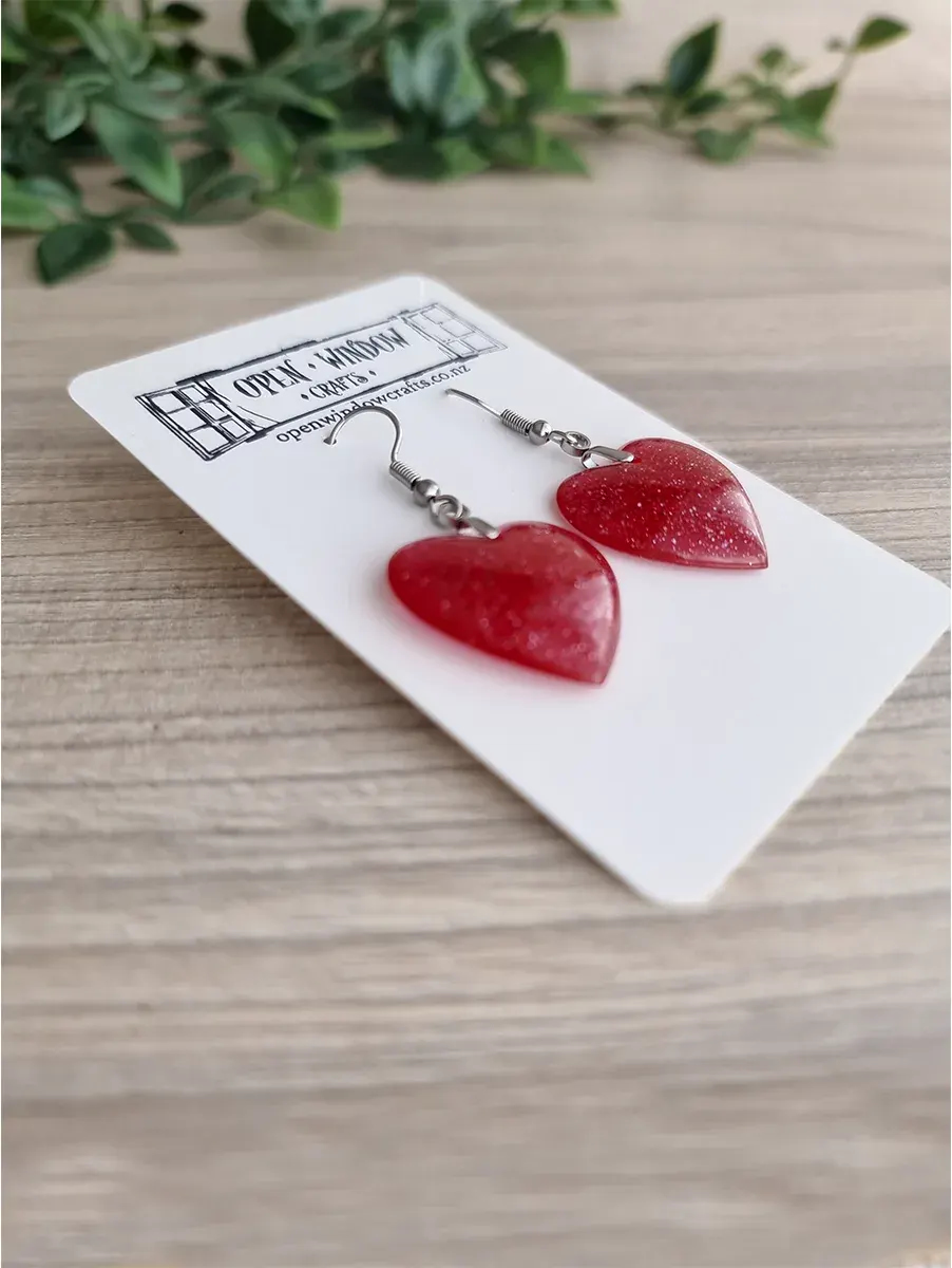 Looking for a special gift? These glittery red heart earrings make a wonderful present for Valentine’s Day, anniversaries, birthdays, or any occasion where you want to share a little love.