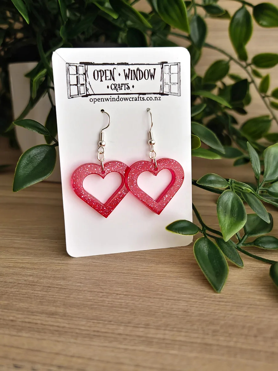 Add a pop of colour and sparkle to your outfit with these eye-catching red glitter resin earrings. Handmade in New Zealand, each pair features a vibrant red base filled with fine glitter that catches the light beautifully.