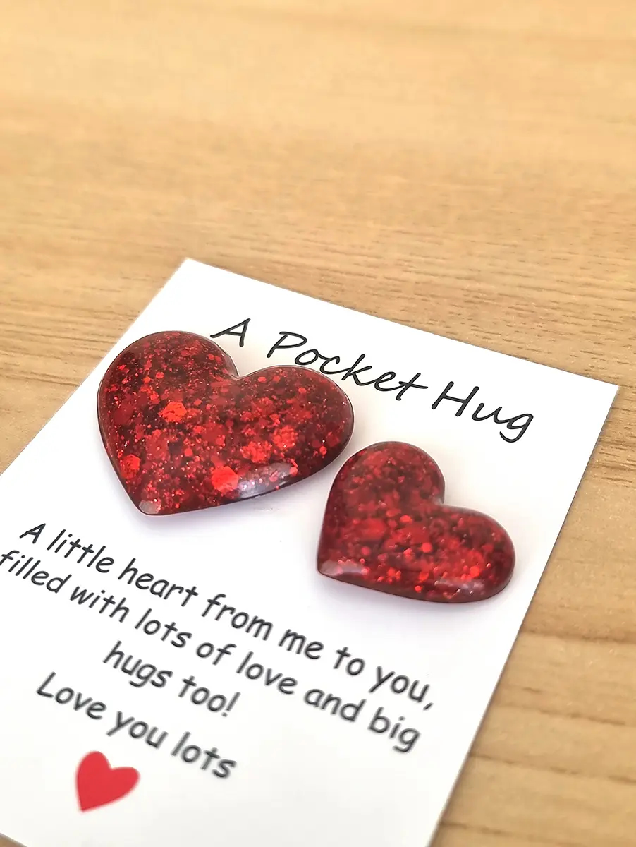 Perfect for any occasion—birthdays, anniversaries, or simply to brighten someone’s day—a resin heart pocket hug is a small gesture with a big impact. 💖