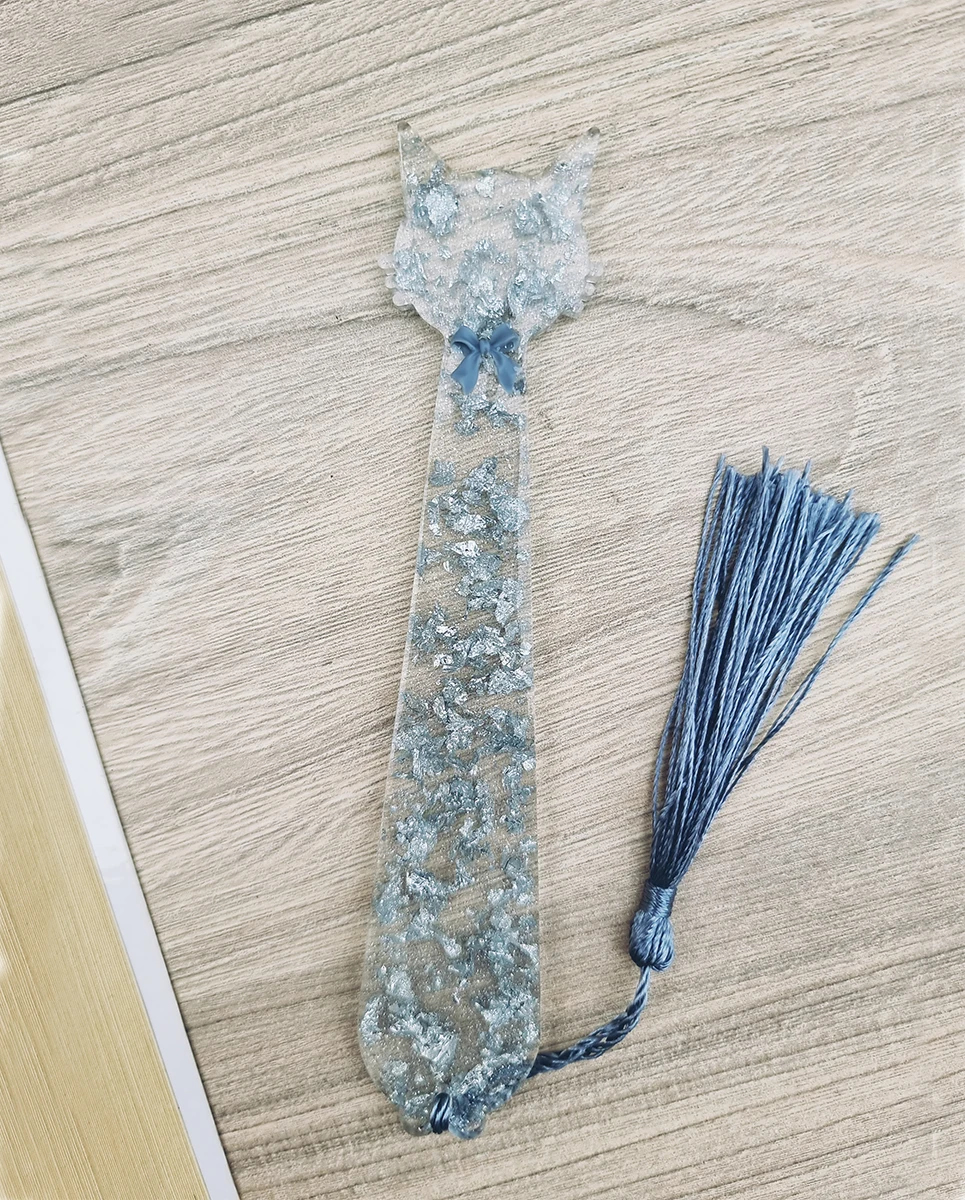Mark your pages in style with our Silver Flake Cat Bookmark with Blue Bow Tie. This elegant and whimsical bookmark features a charming cat design infused with shimmering silver flakes, giving it a unique and eye-catching look. Accentuated with a delicate blue bow tie, it adds a touch of personality and sophistication to your reading experience. Handcrafted from high-quality resin, this lightweight yet durable bookmark is perfect for book lovers, students, or as a thoughtful gift for cat enthusiasts.