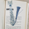 Add a little sparkle and charm to your reading with the Silver Flake Cat Bookmark with Blue Bow Tie, a stylish and functional accessory for any book lover.