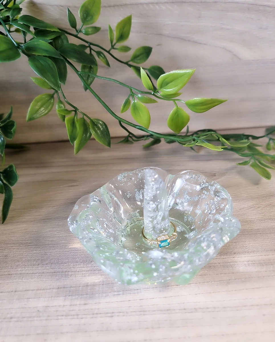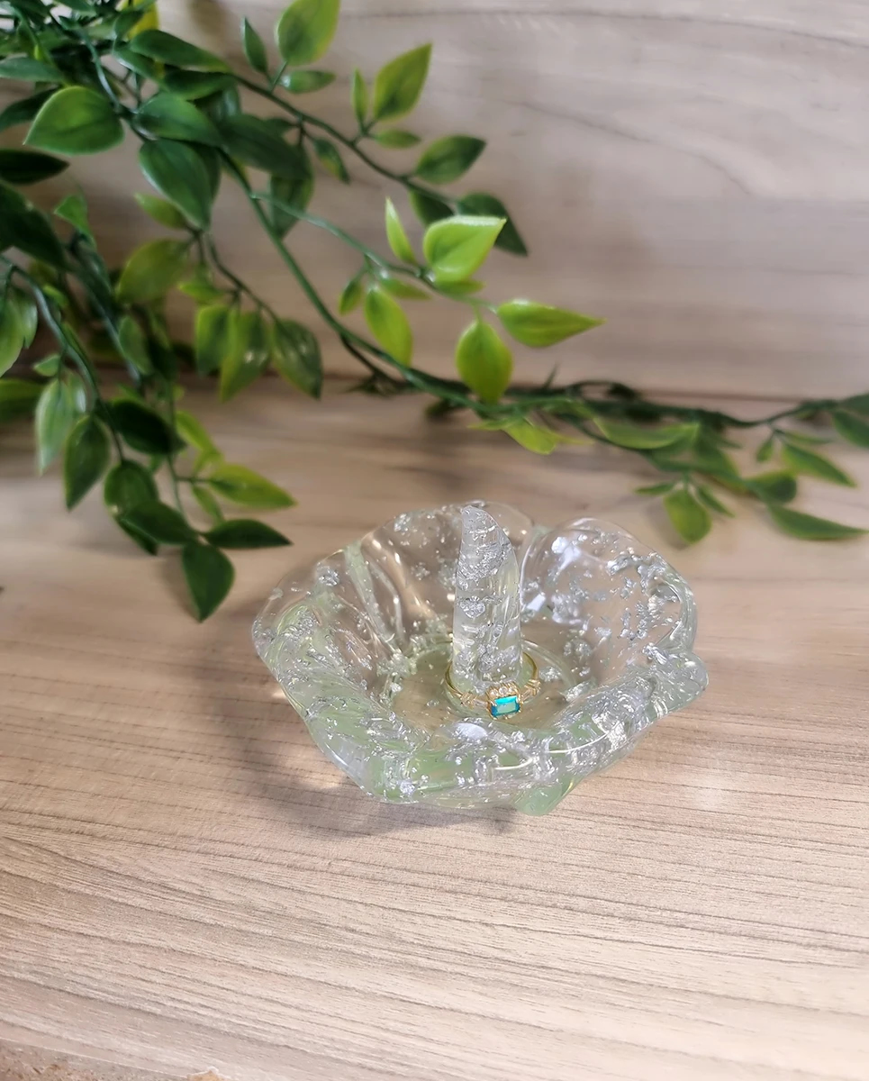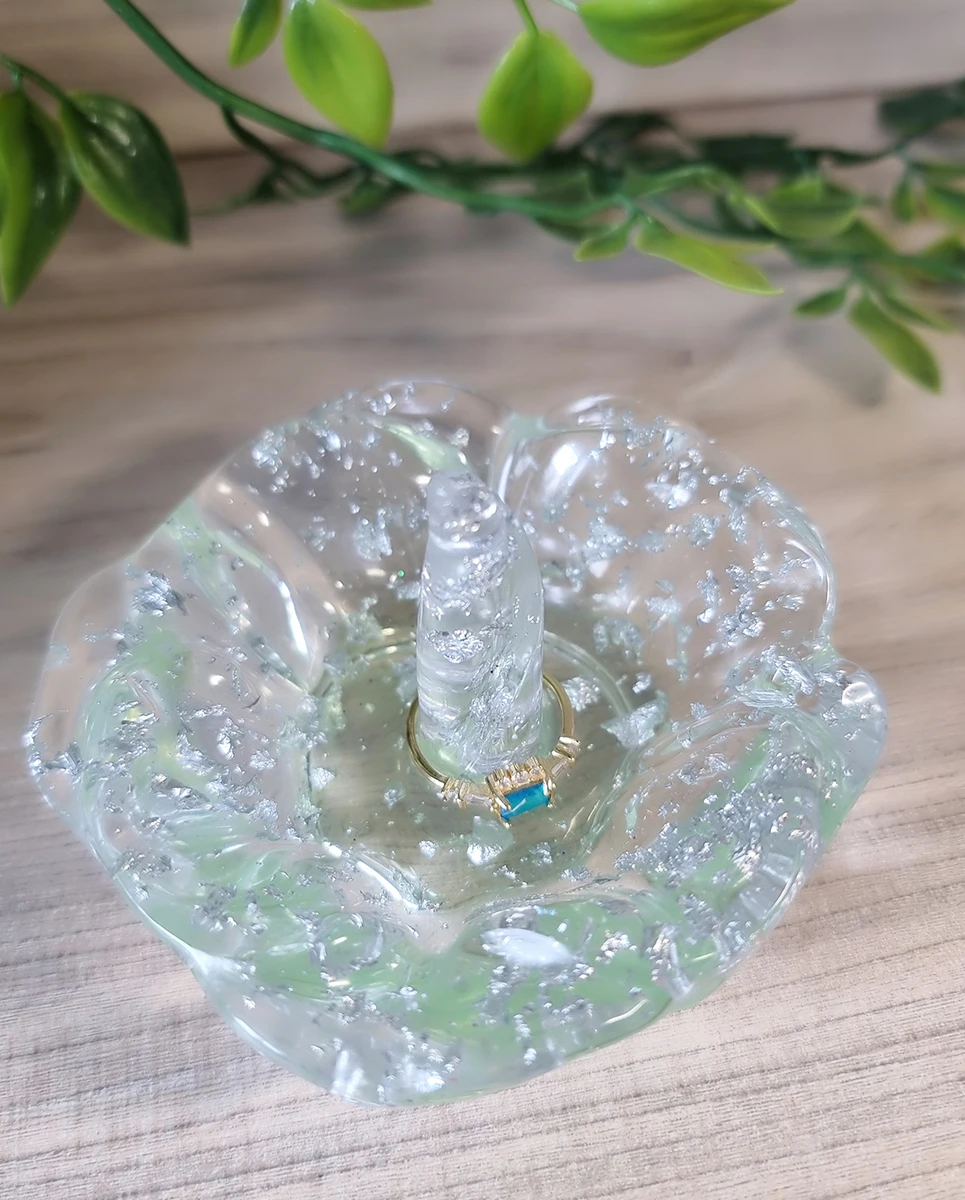 Our Silver Flake Ring Tray is a stylish and practical way to display your rings. Made from durable resin and accented with shimmering silver flakes, it adds a touch of elegance to your jewellery organization. Perfect for keeping your rings safe and beautifully showcased