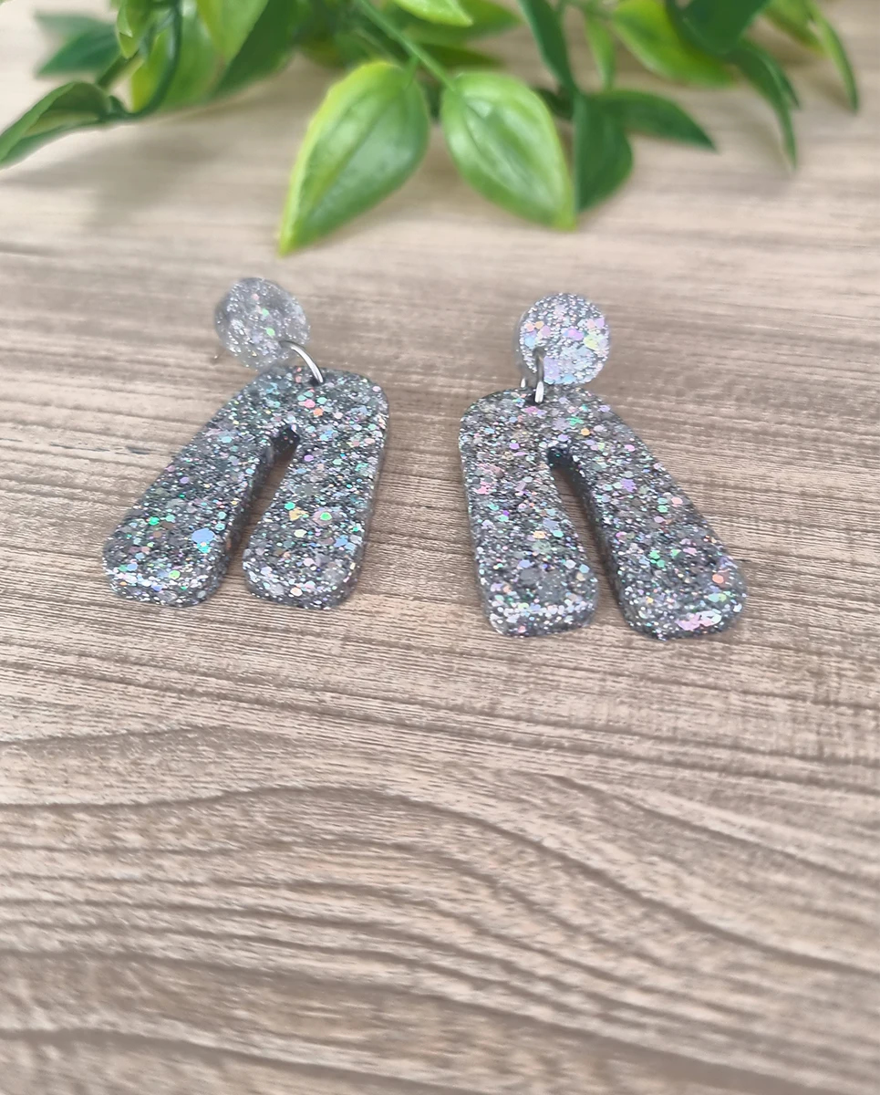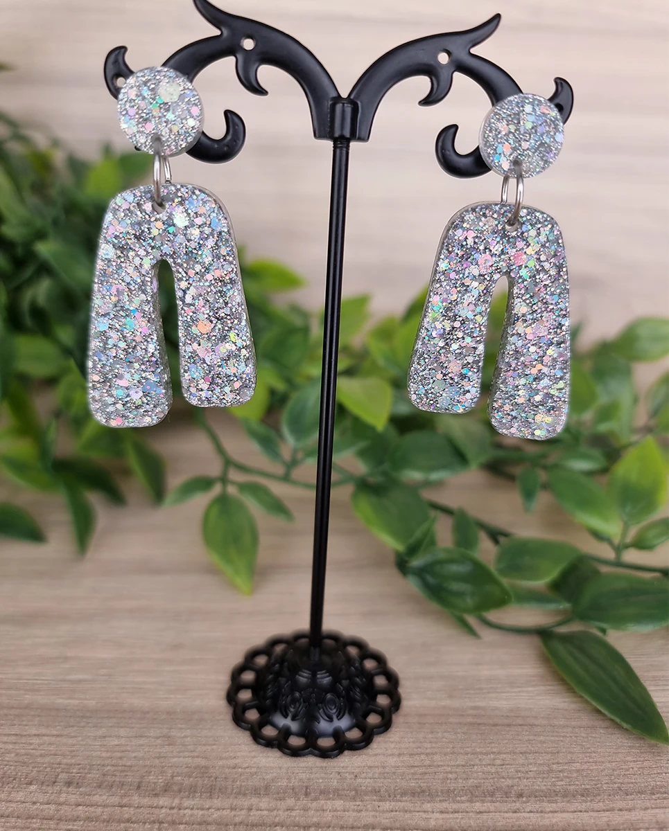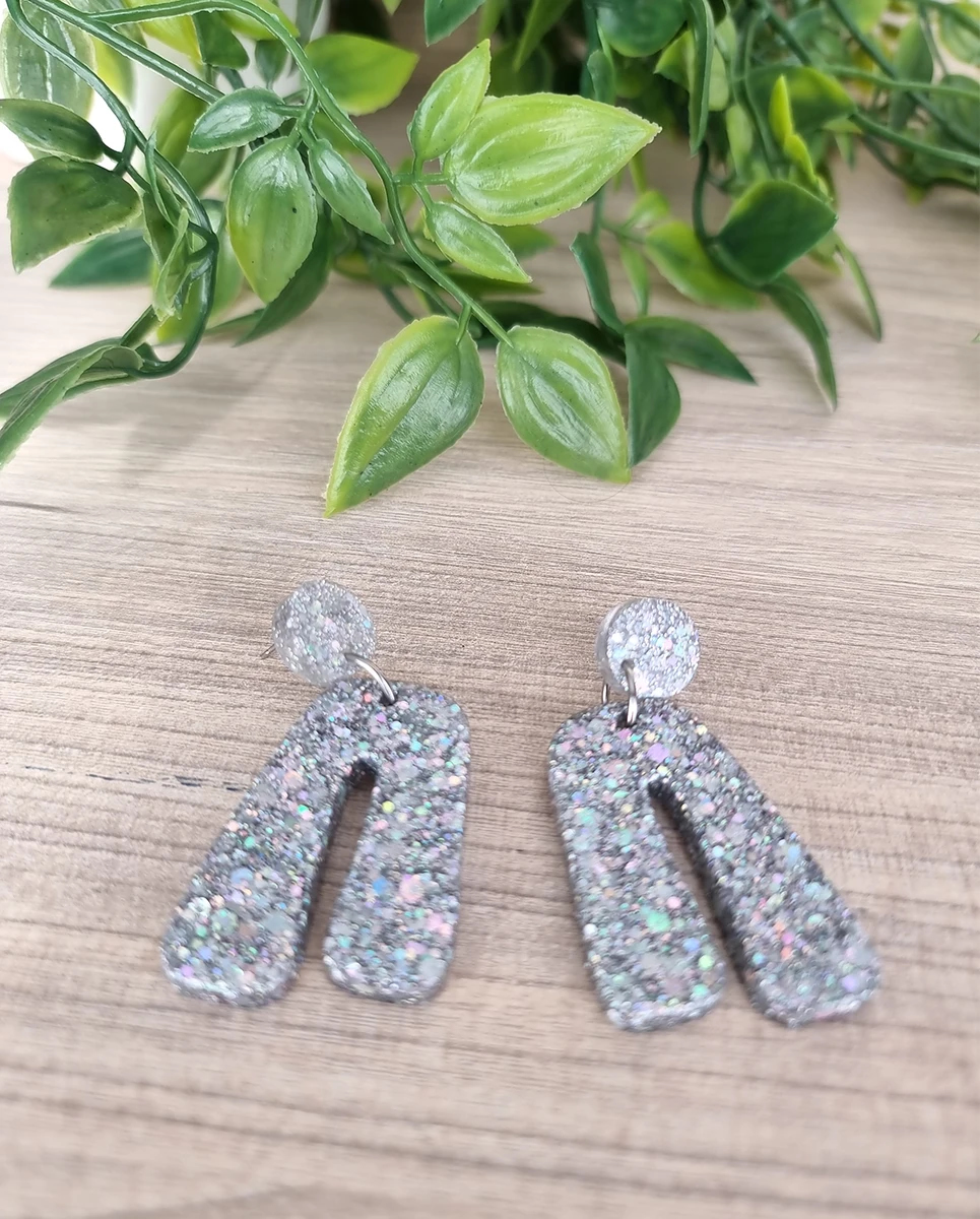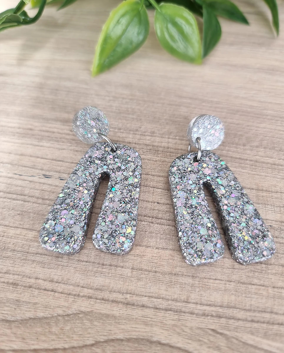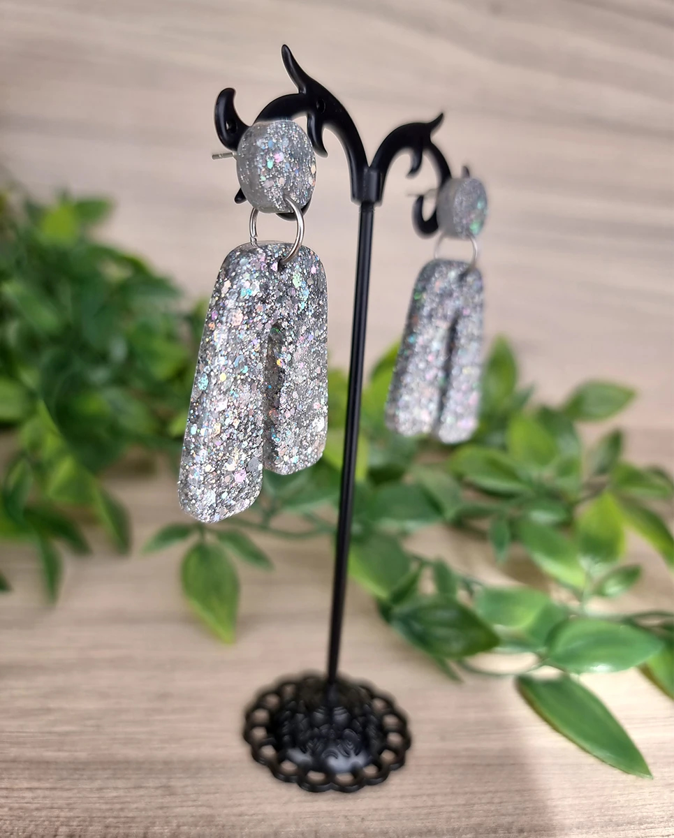 Silver Glitter Dangle Earrings – Silver Resin Earrings