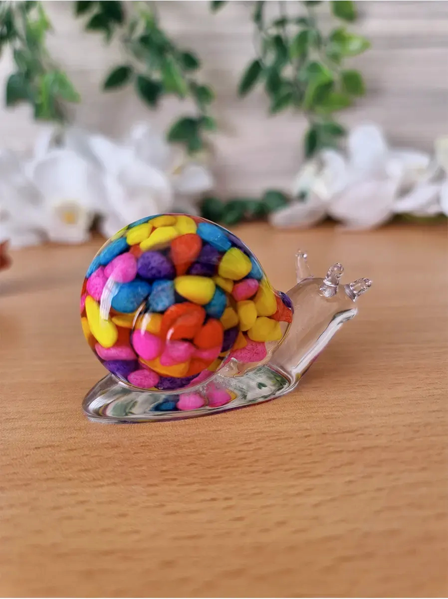 Bring a little joy and natural beauty to your space with this colorful Pebble-Filled Resin Snail—a tiny treasure full of charm.