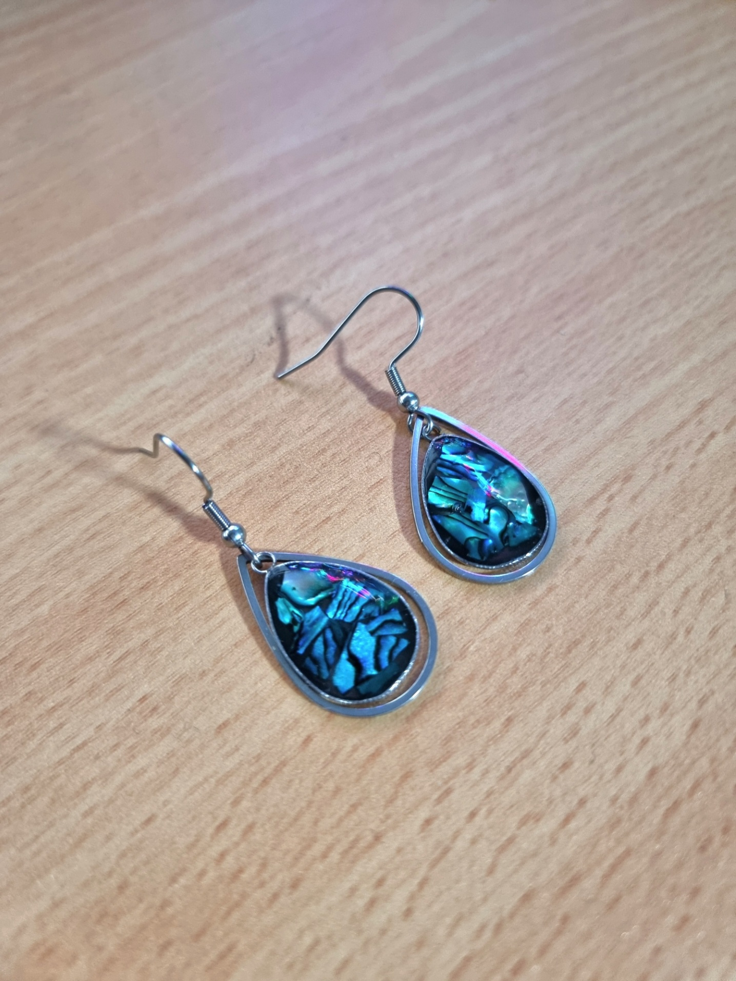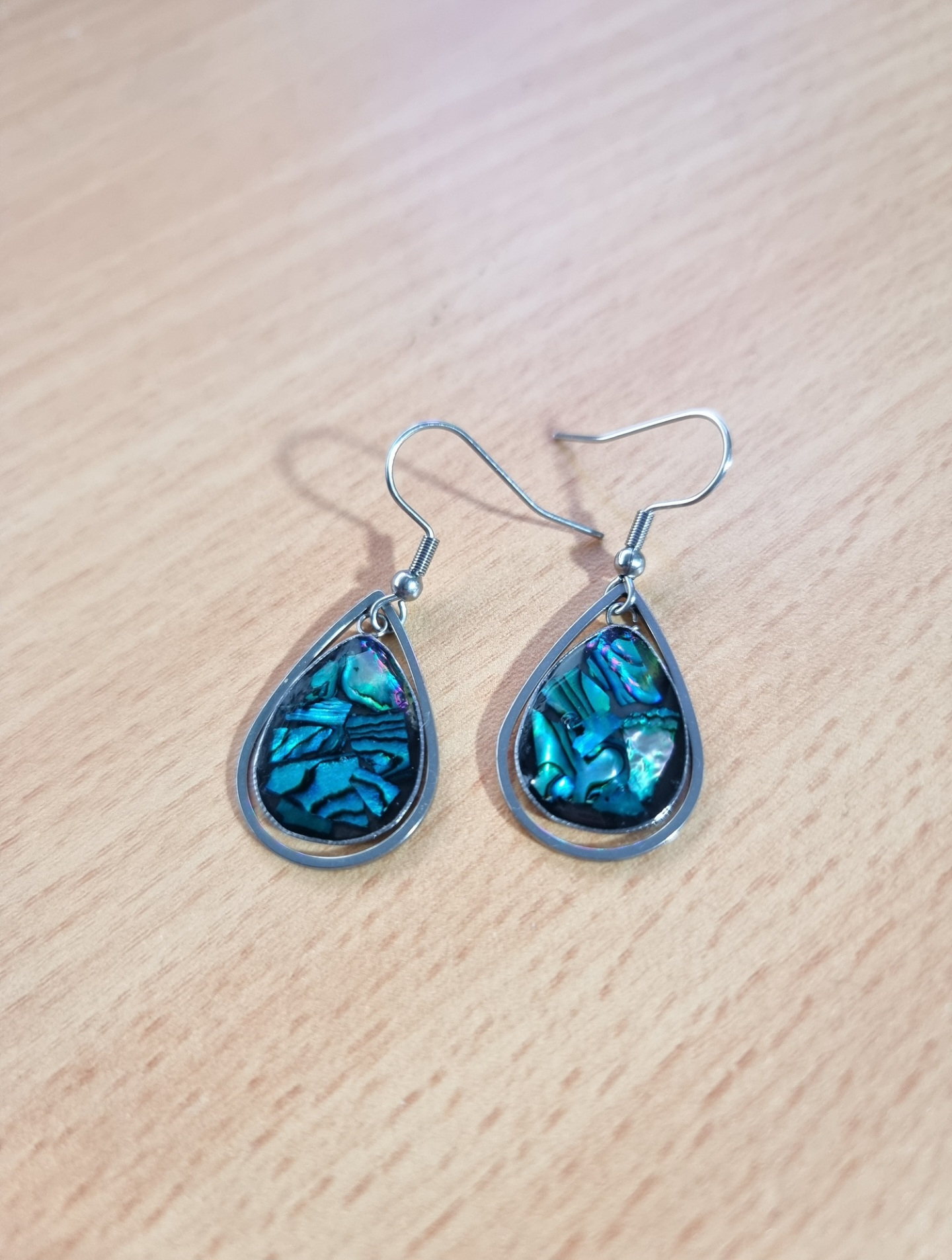Small Teardrop Paua Dangle Resin Earrings