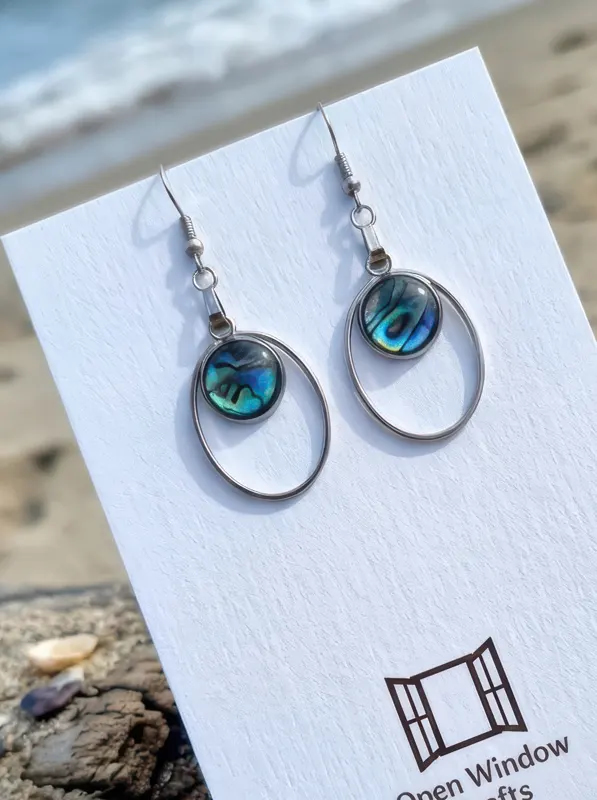 Oval Paua Dangle Resin Earrings