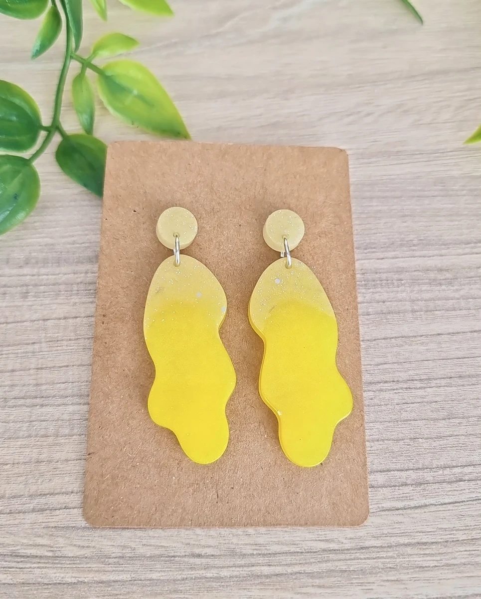 Yellow Irregular Glitter Stud Dangle Earrings – Yellow Resin Earrings